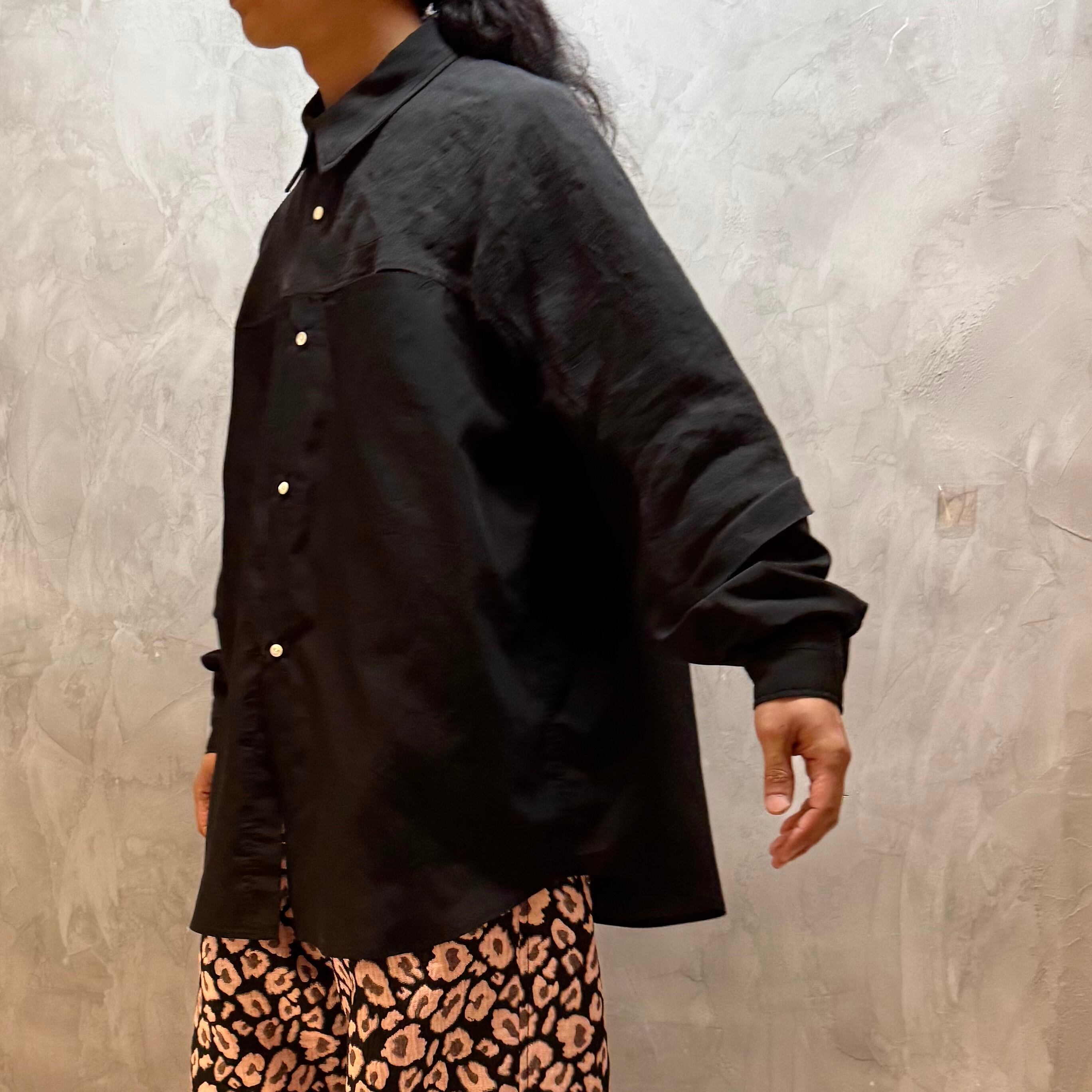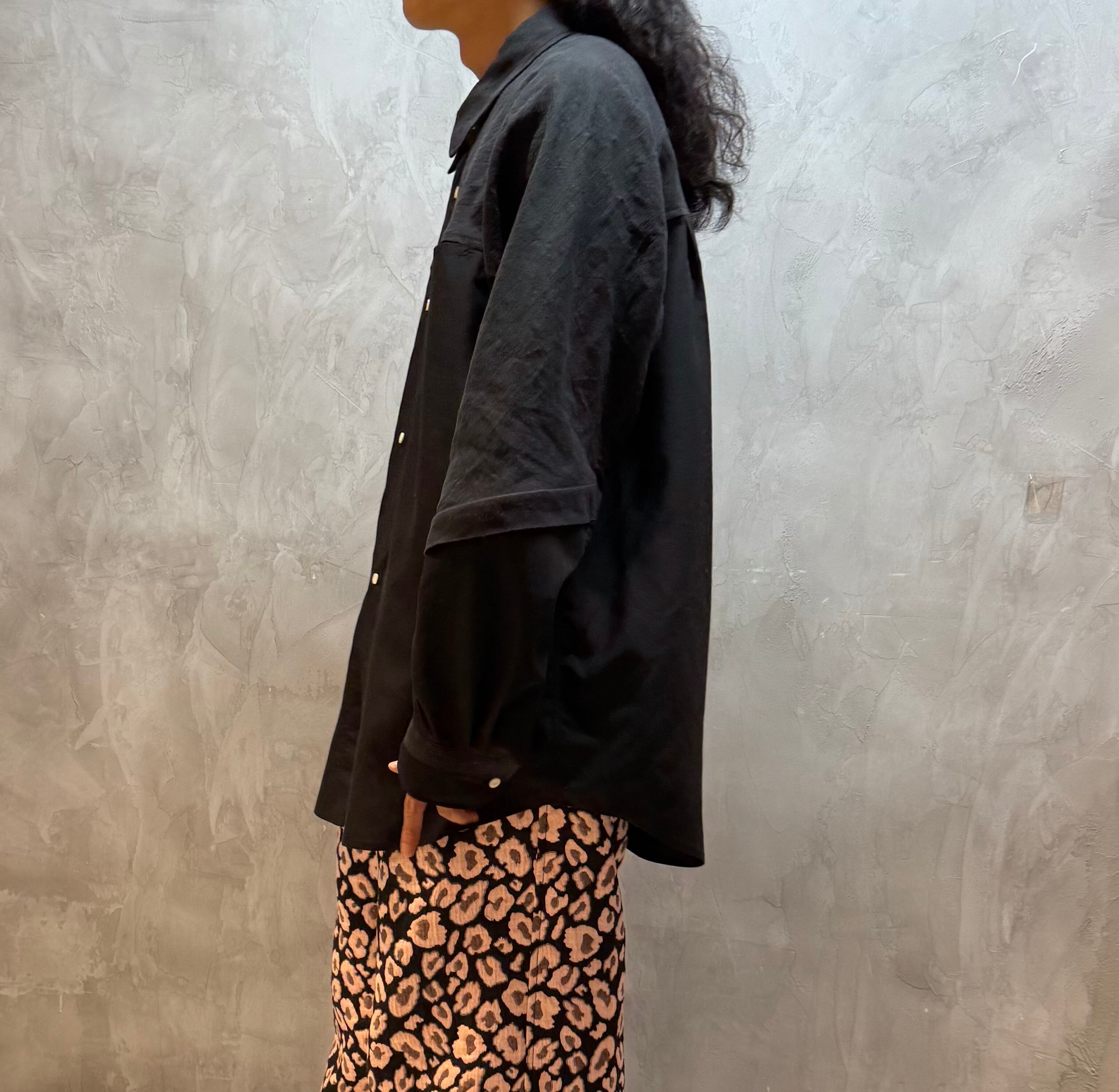 リネンとリヨセルの異素材ブラック