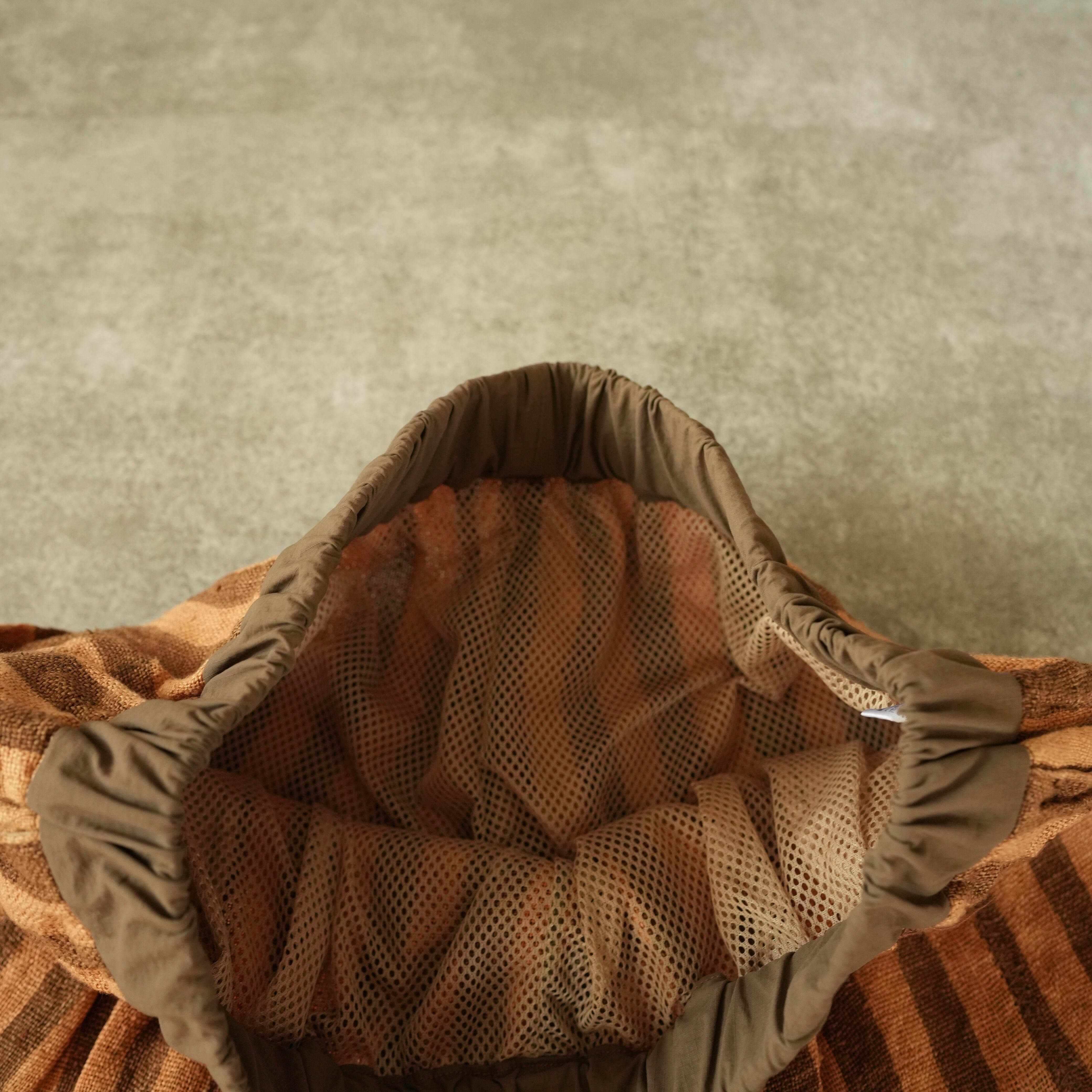 製品後色止めをし、洗いにかけてありますが手染め生地の為若干色が出る場合がございます。他のものと分け、お洒落着洗いなどの弱流で洗ってください。強い脱水や乾燥機の使用はお控えください。