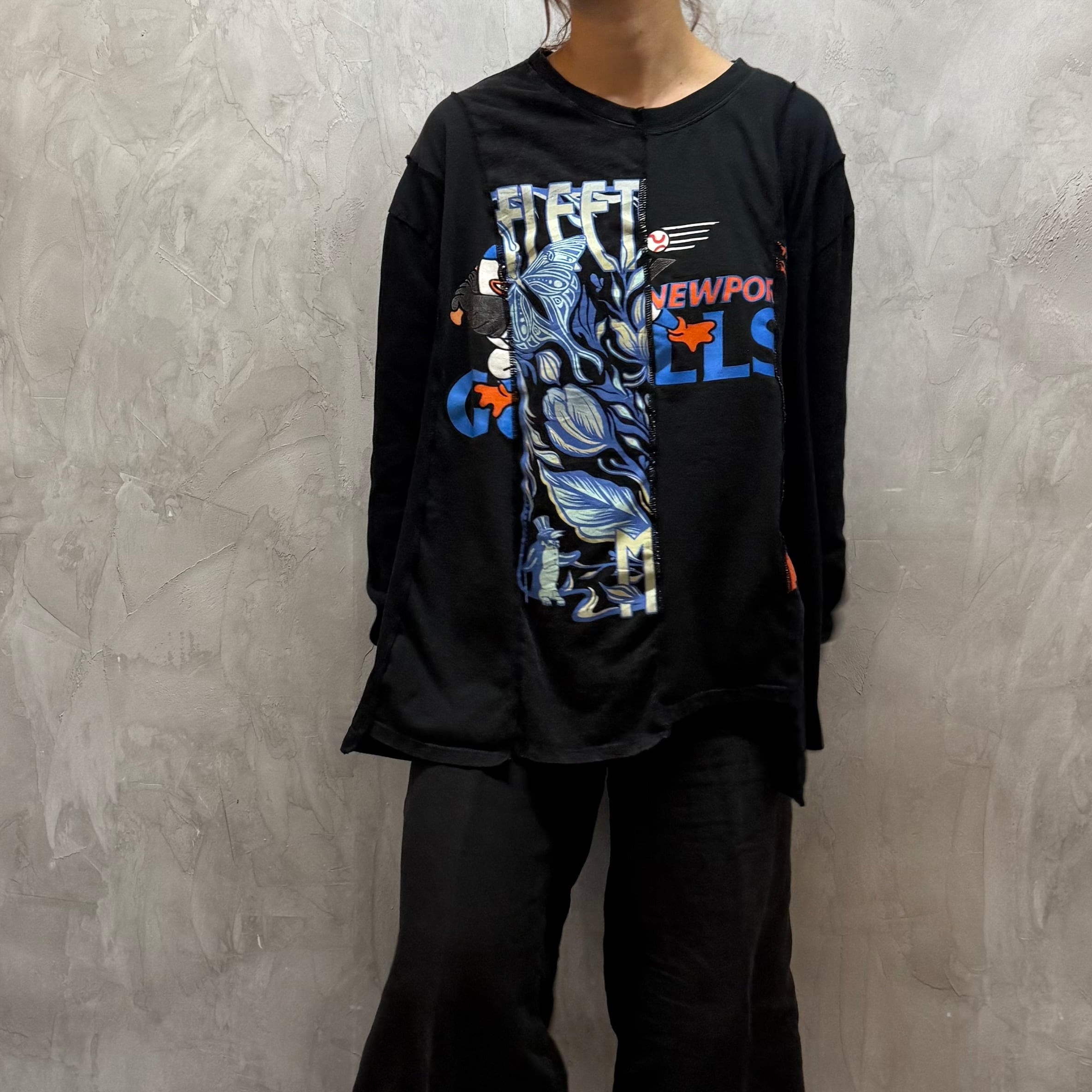 3〜4枚のTシャツを贅沢に繋いだビッグシルエットTは一枚でしとめるインパクト。