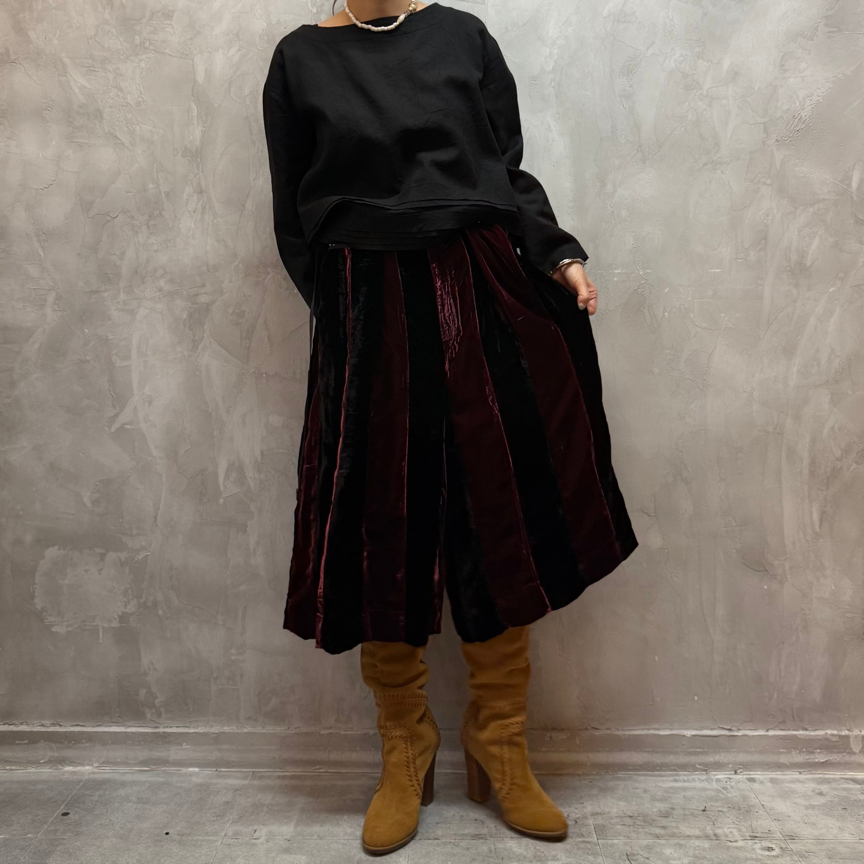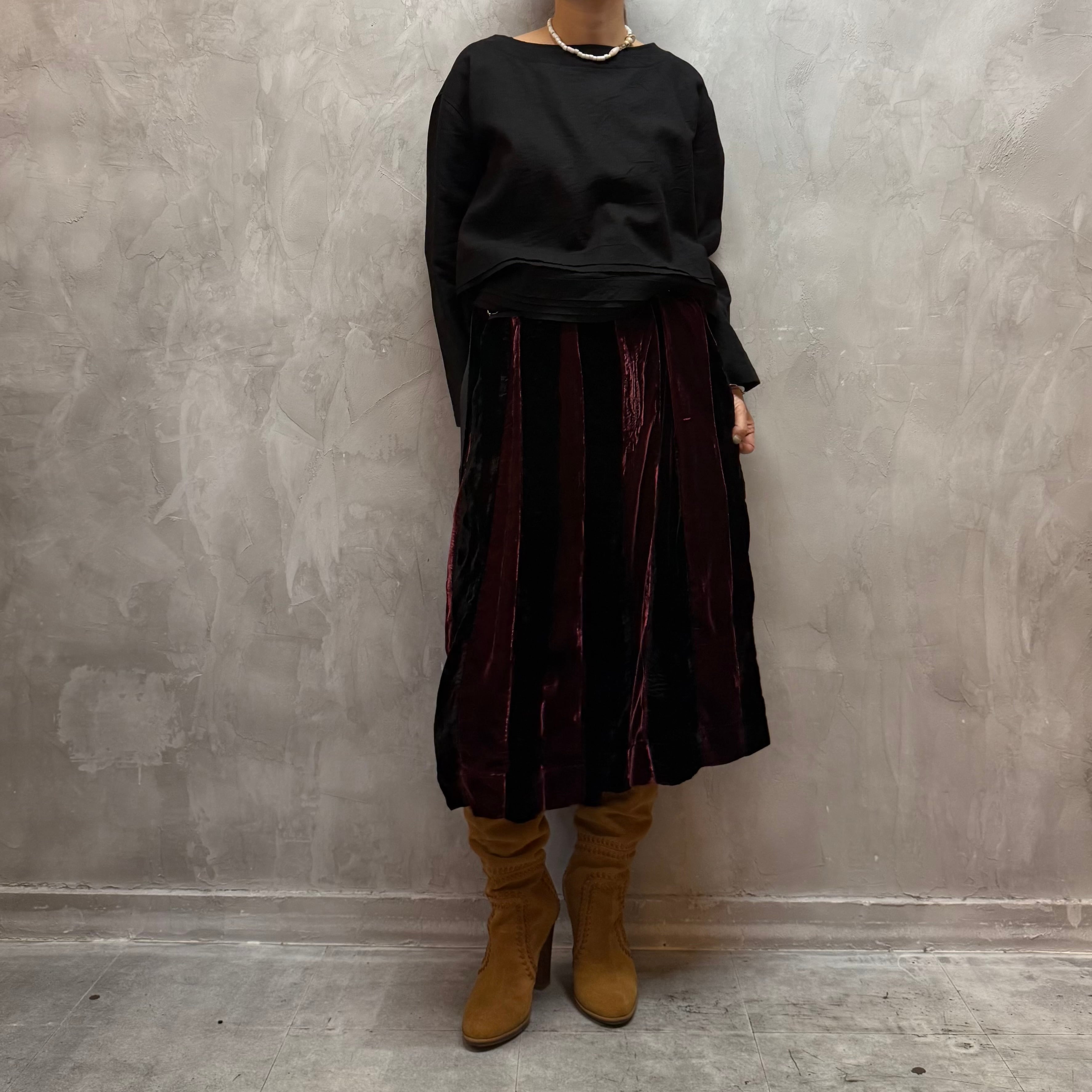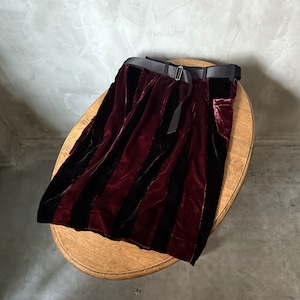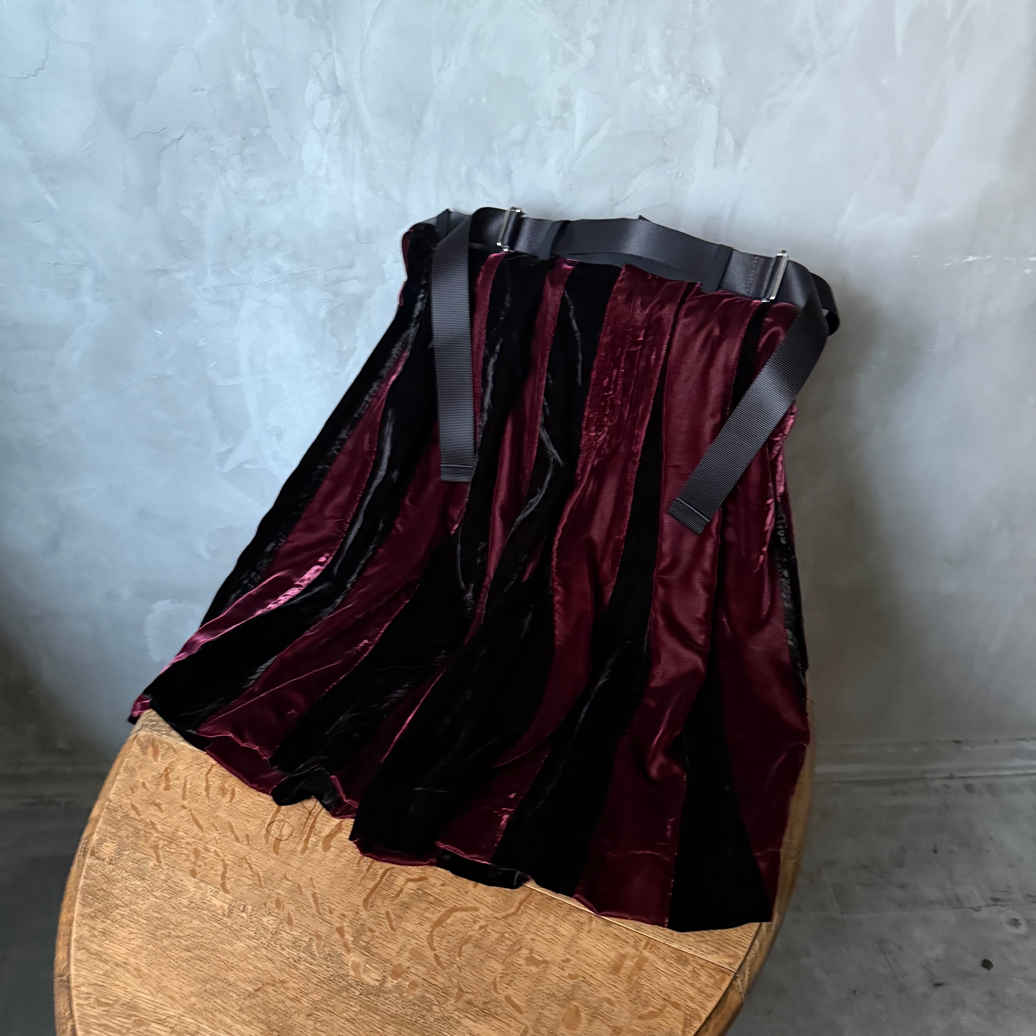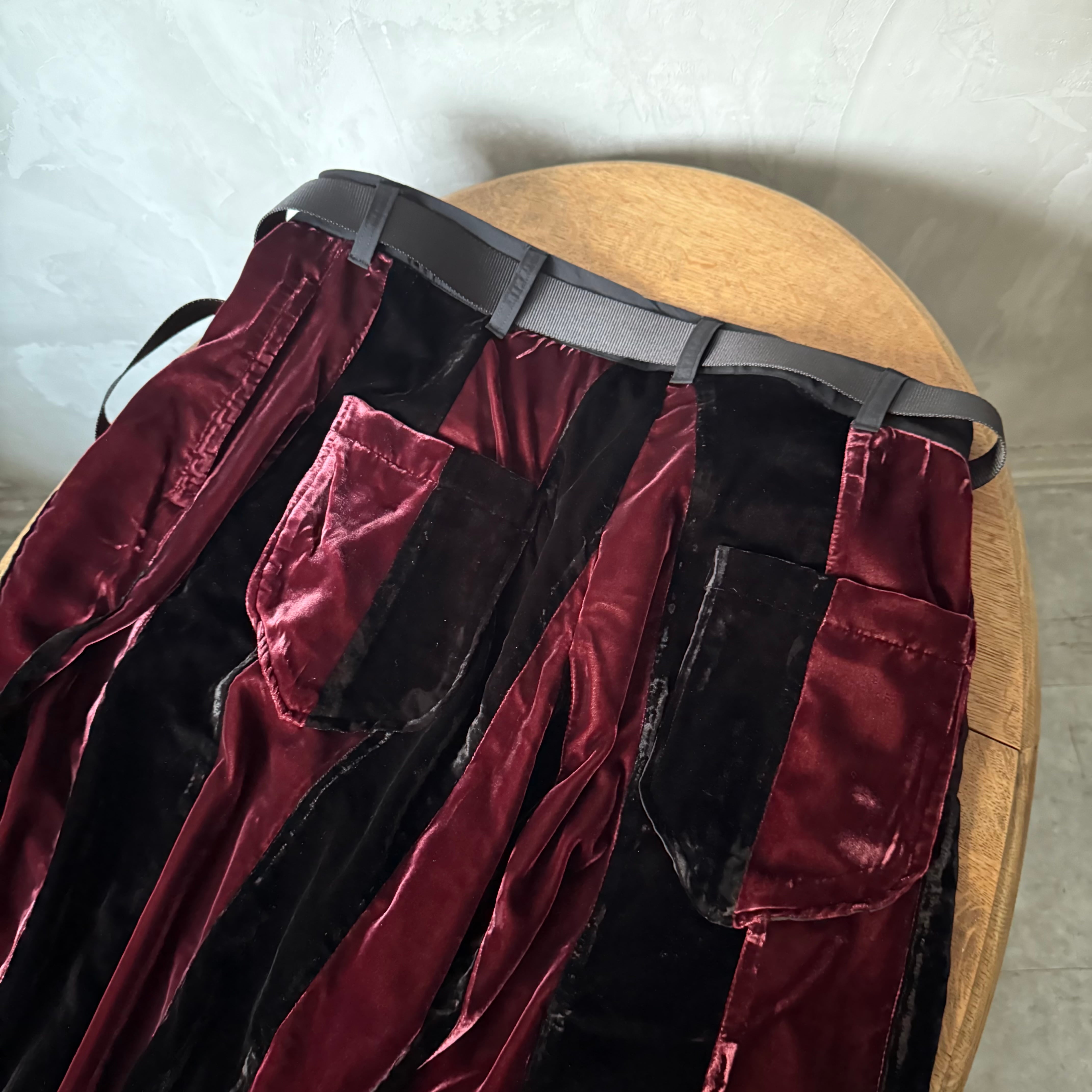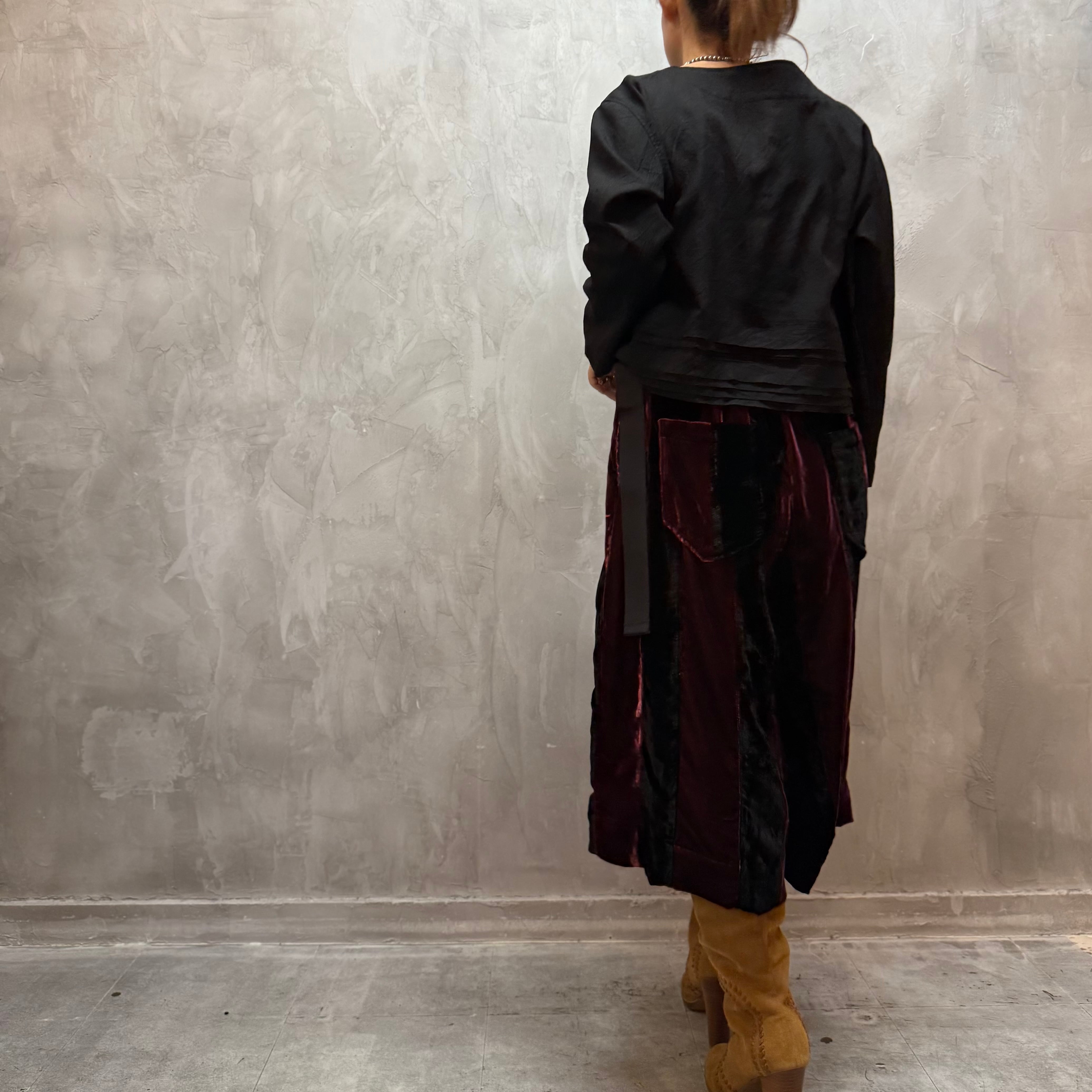 2色のベロアを帯状に裁断し、一枚ずつ丁寧に繋ぎ合わせてストライプを描き出すところから始めました