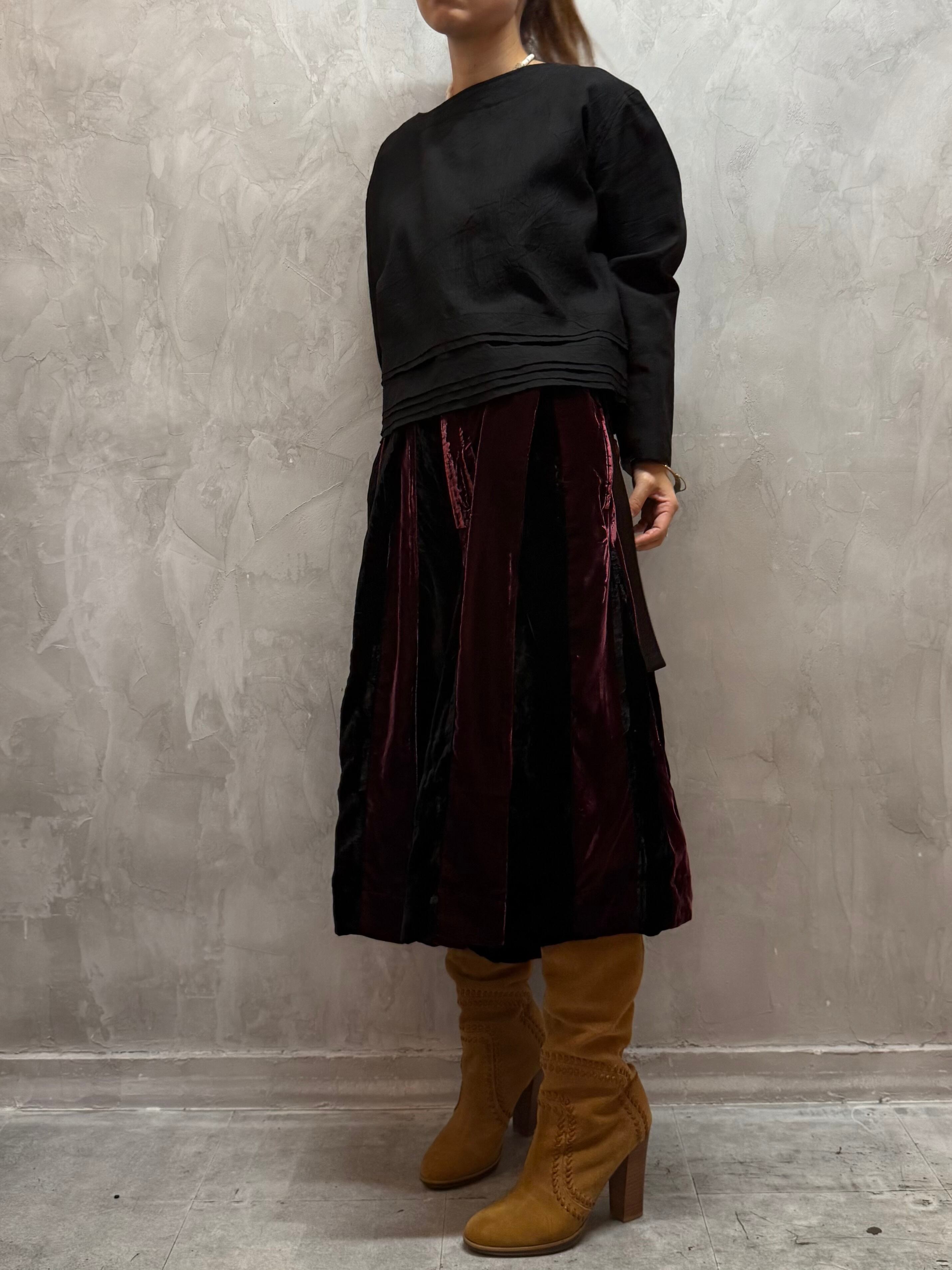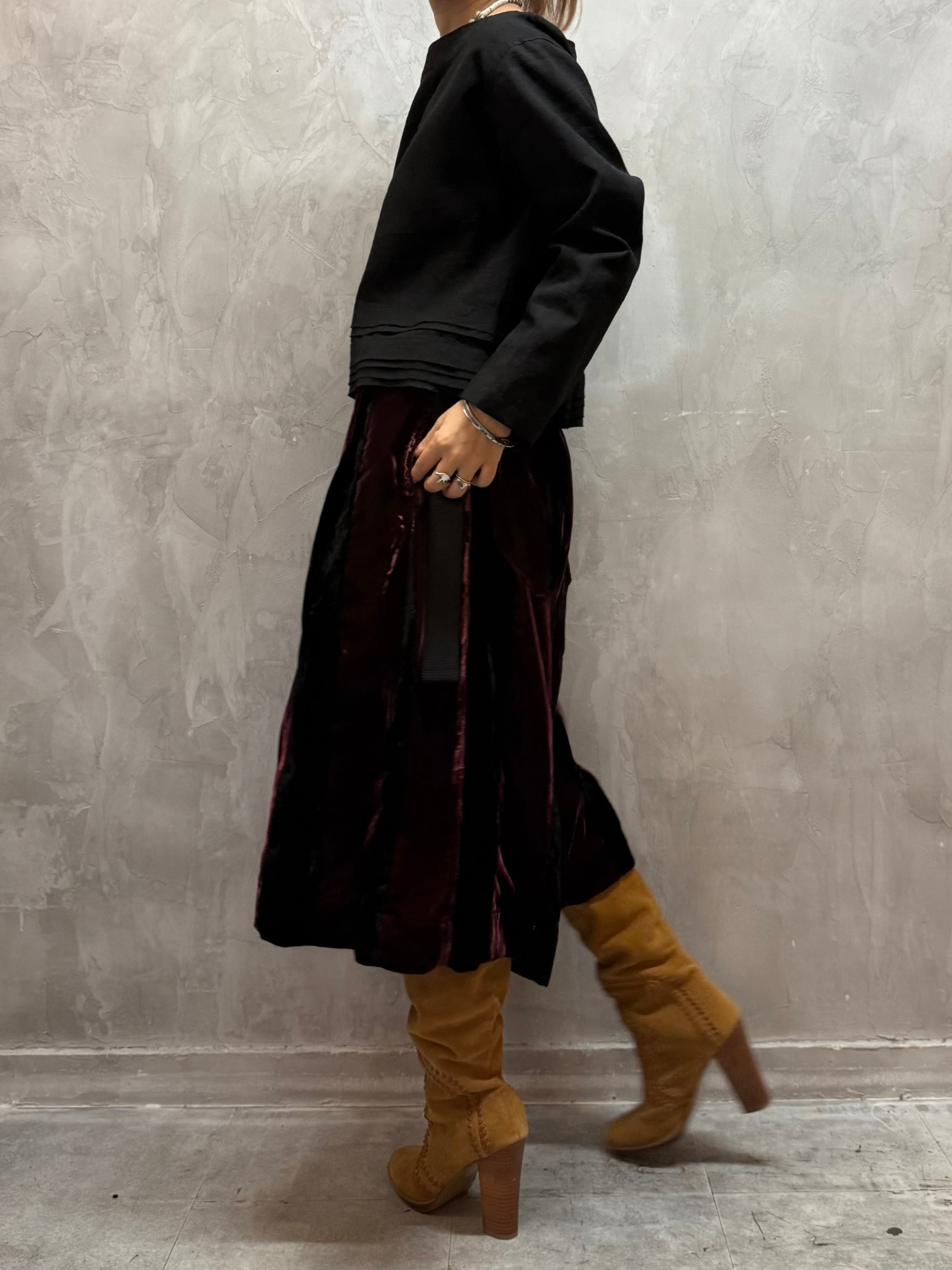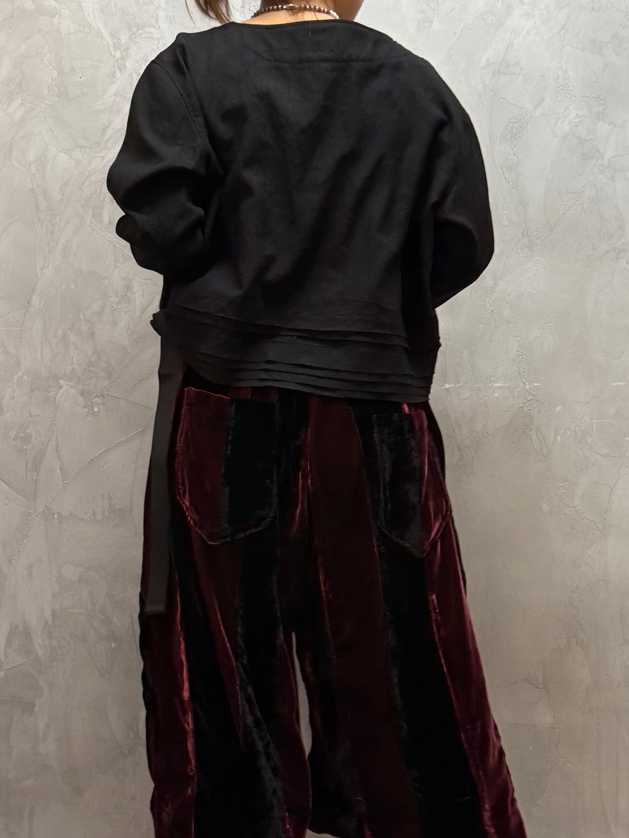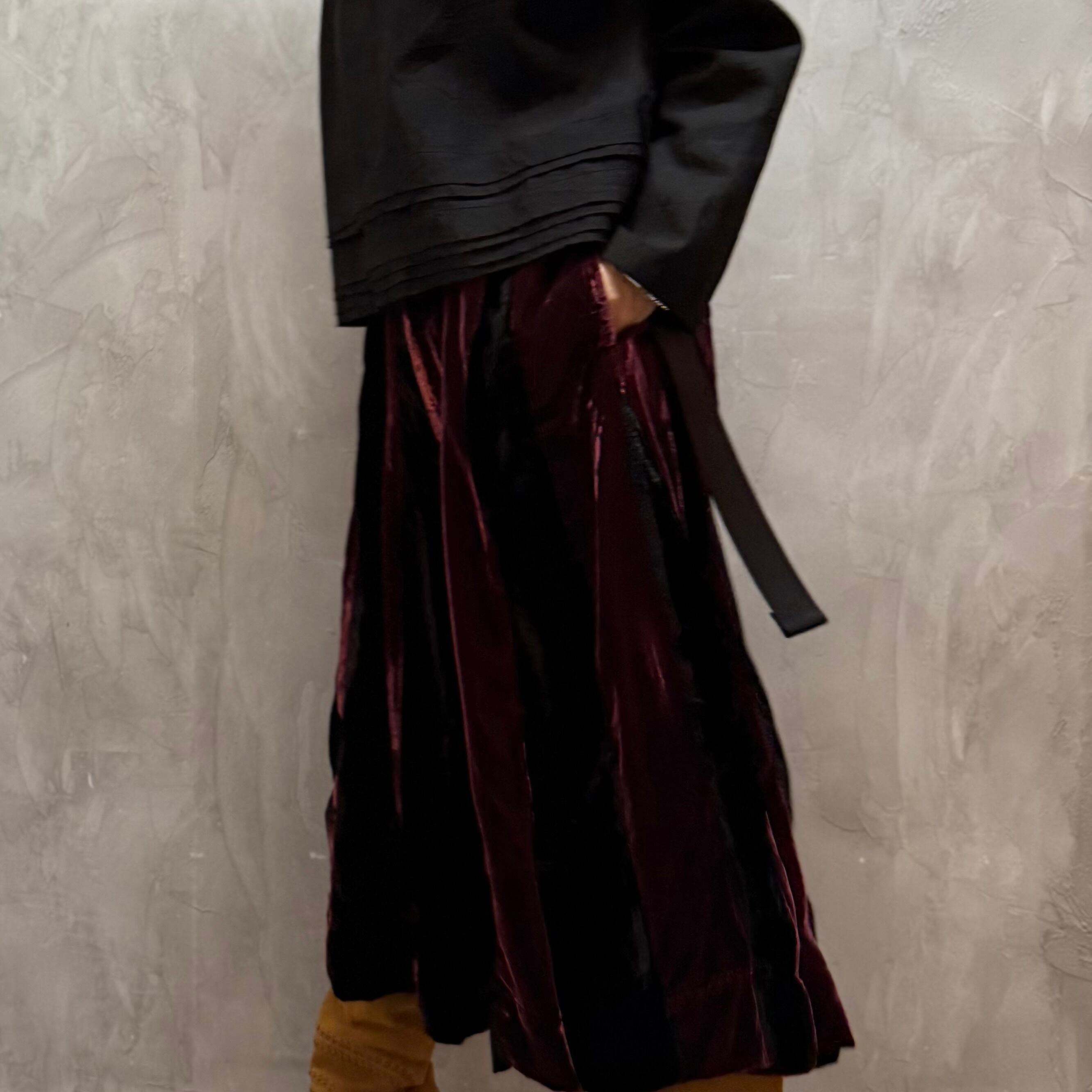 艶を帯びたベロアが動きに呼応して陰影を刻み、クラフトの温度を保ちながらも洗練を纏う