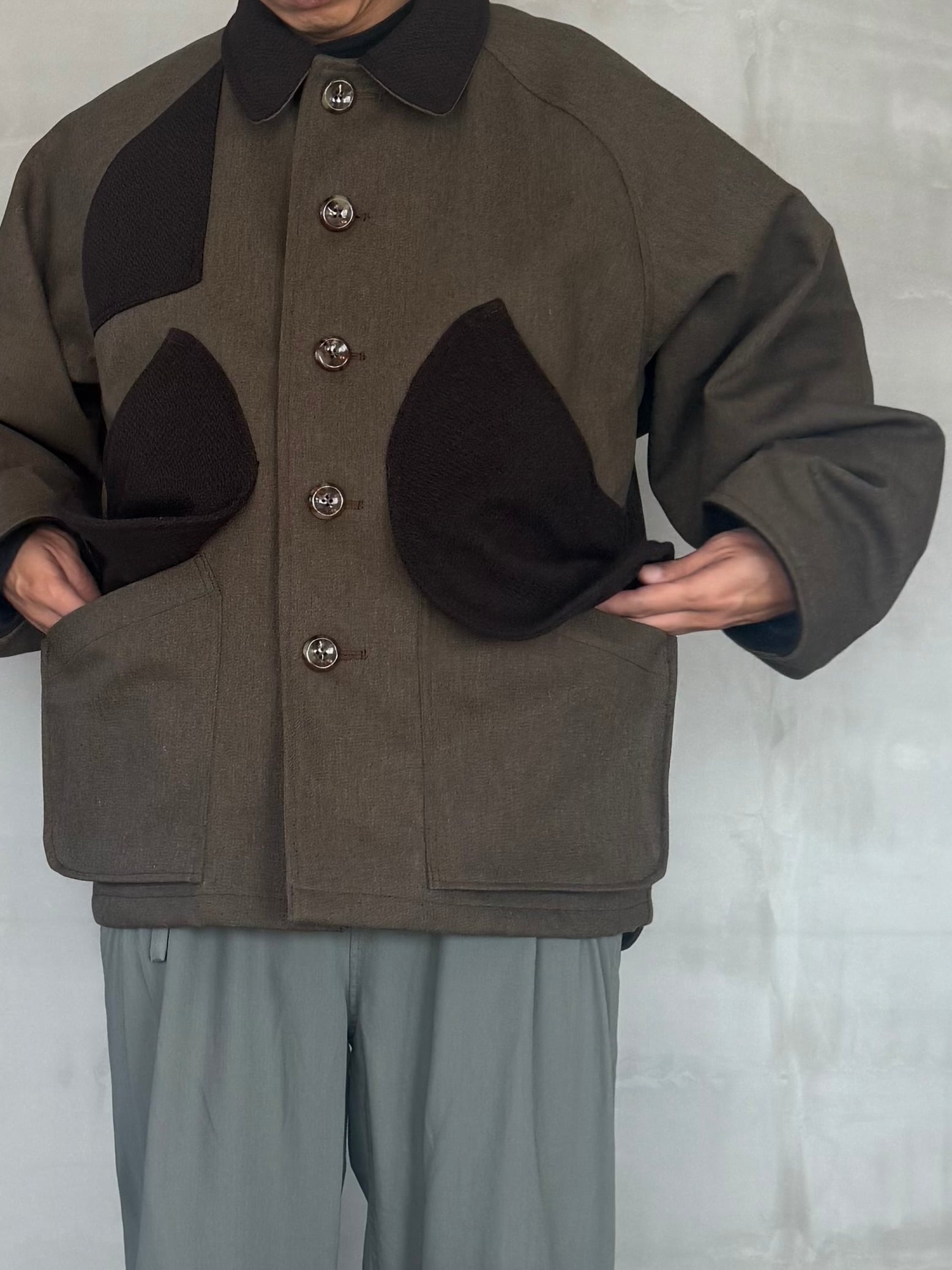 クラシックなハンティング由来の佇まいを踏まえながらも、現代の街に溶け込む洗練された一着です