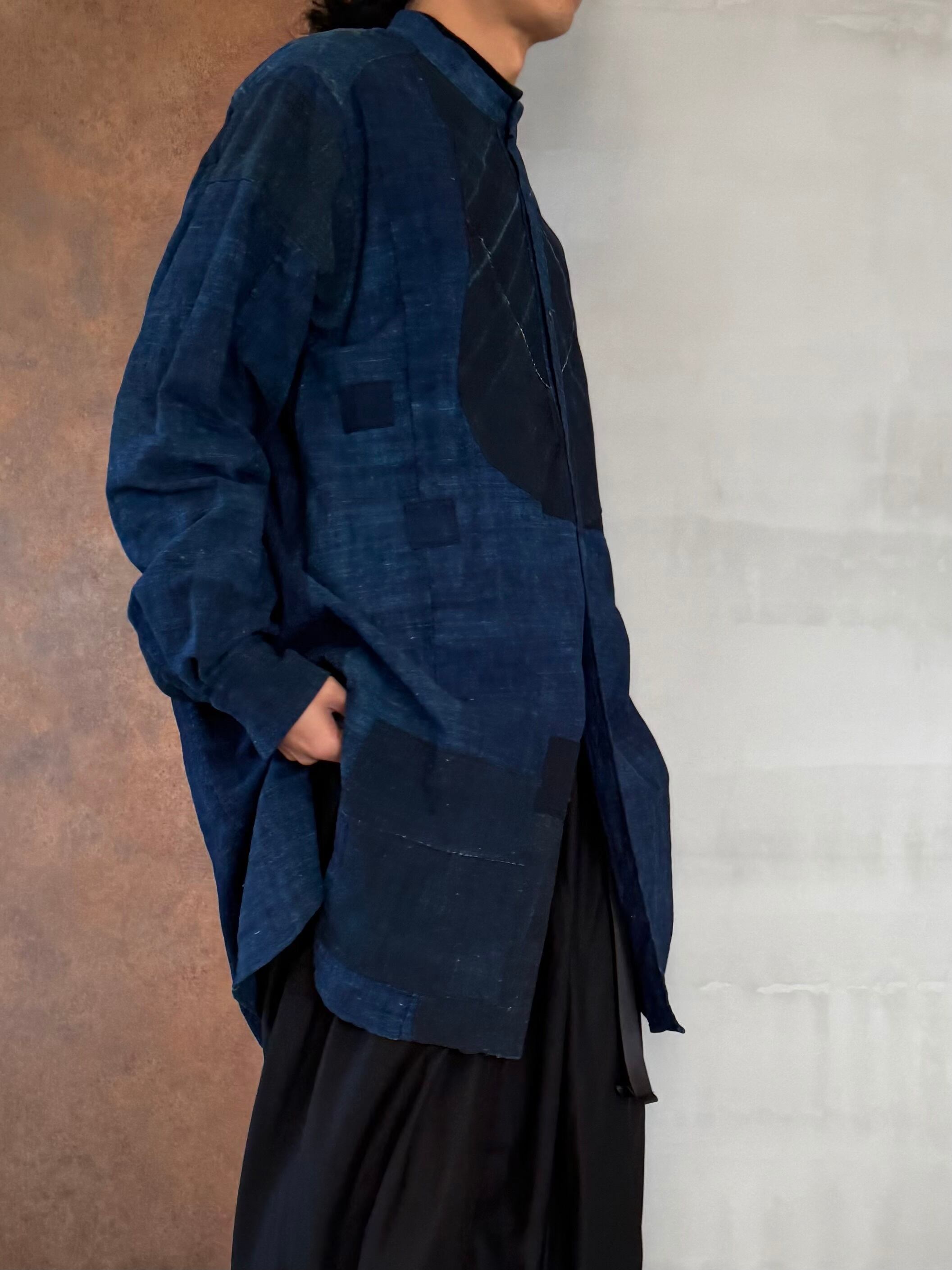 自然の呼吸を残した藍の深みを纏いながらも、現代の空気に馴染む構築的な仕上がりです。