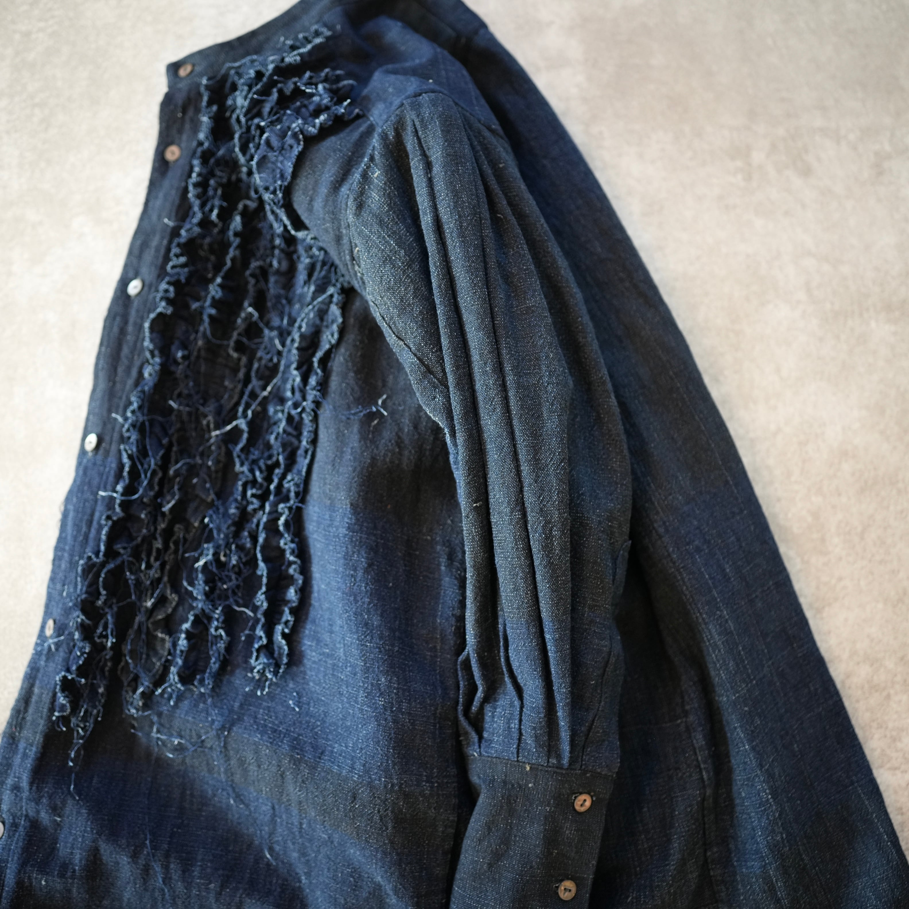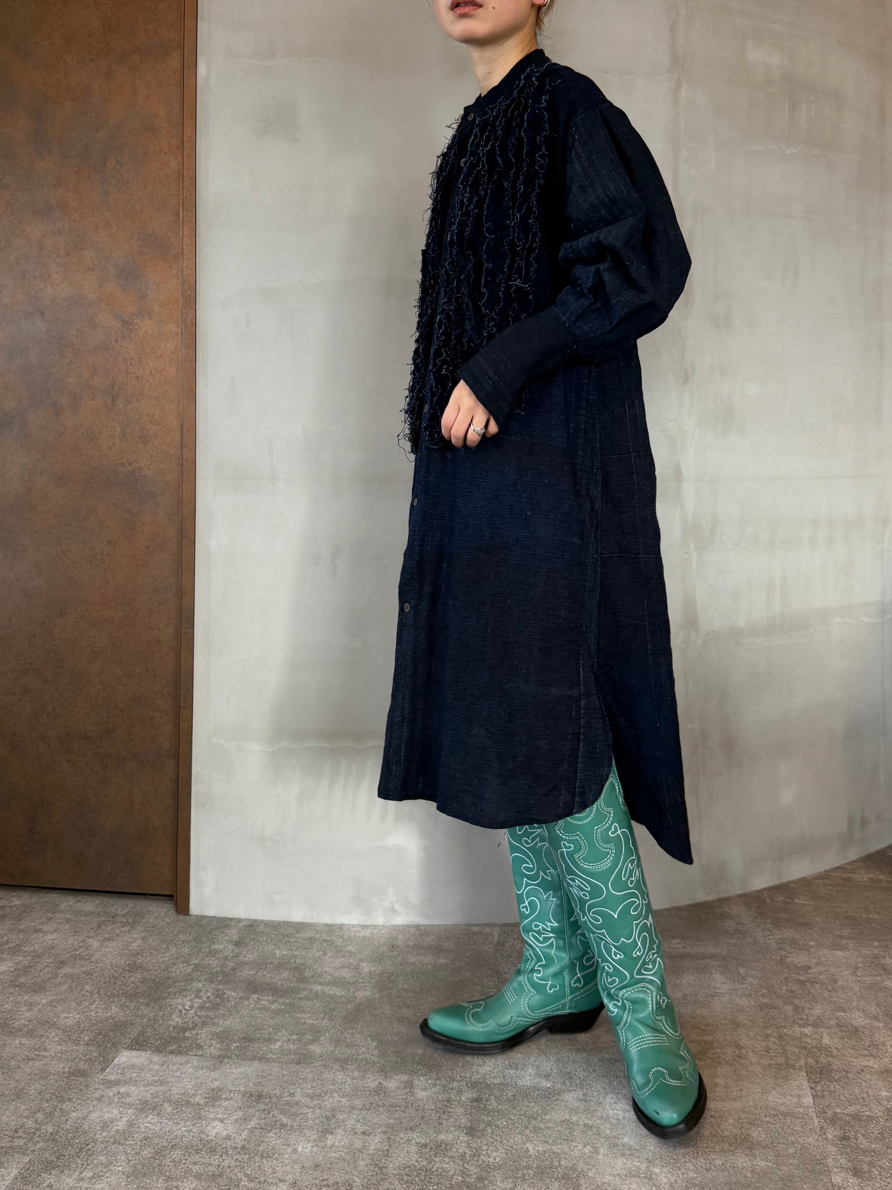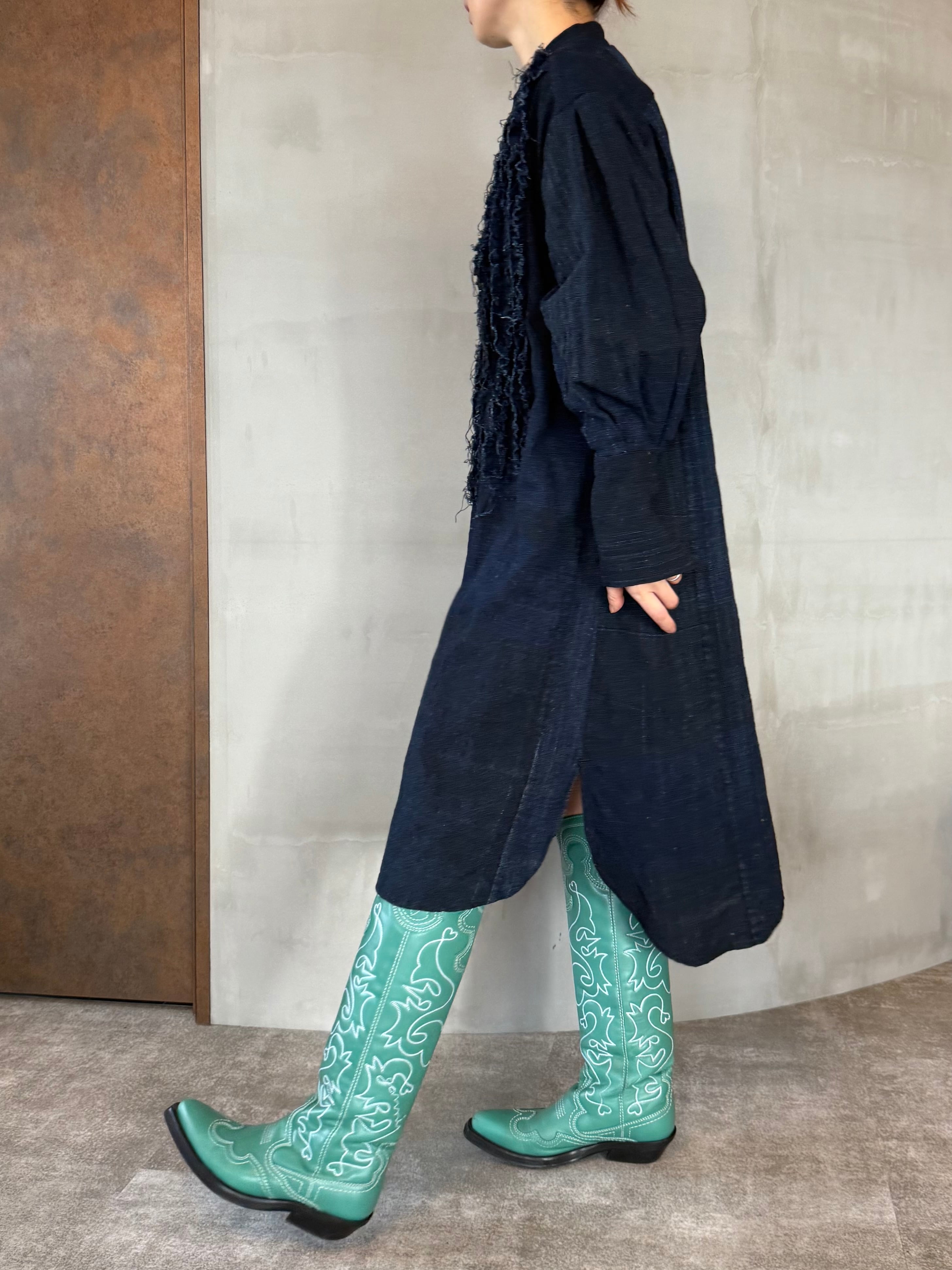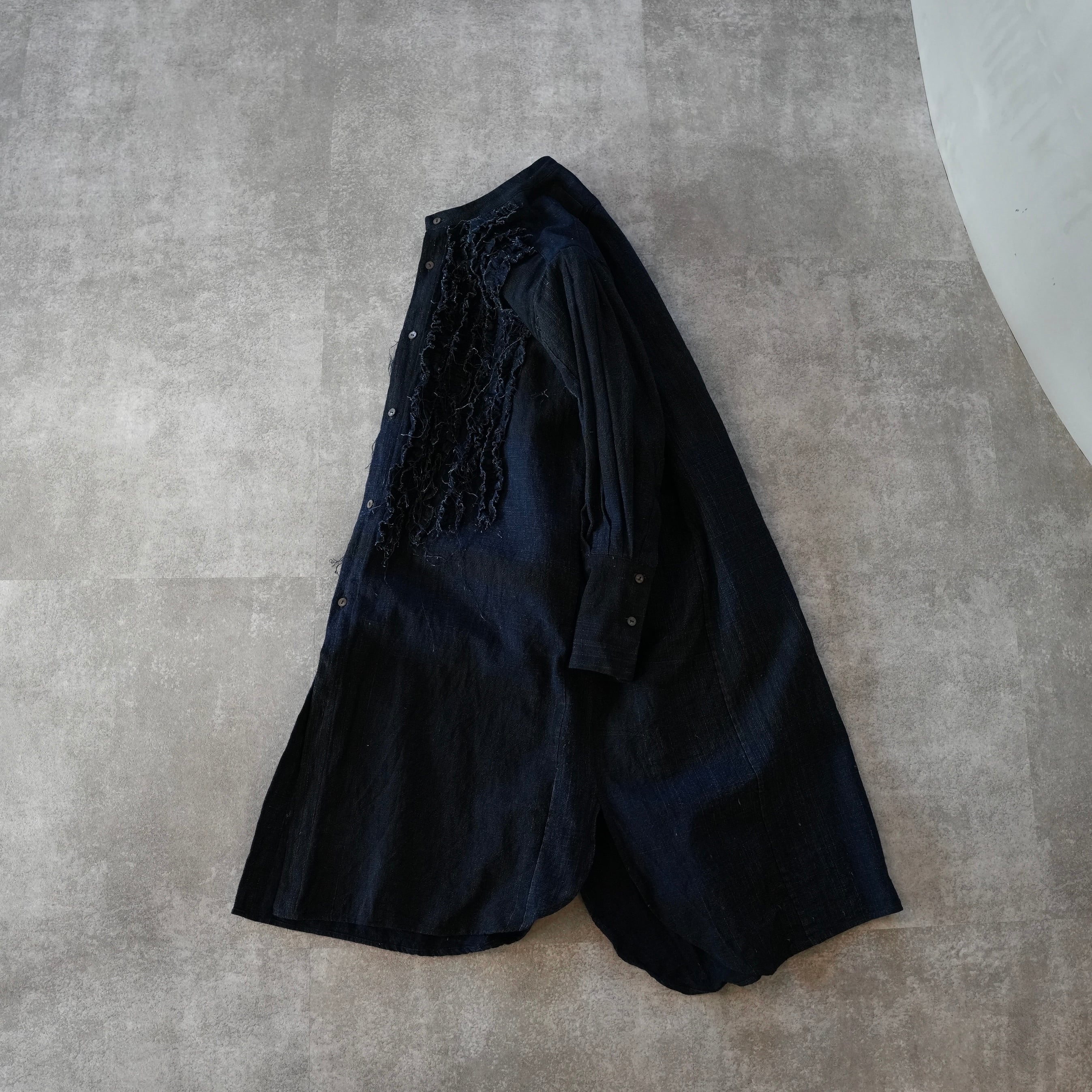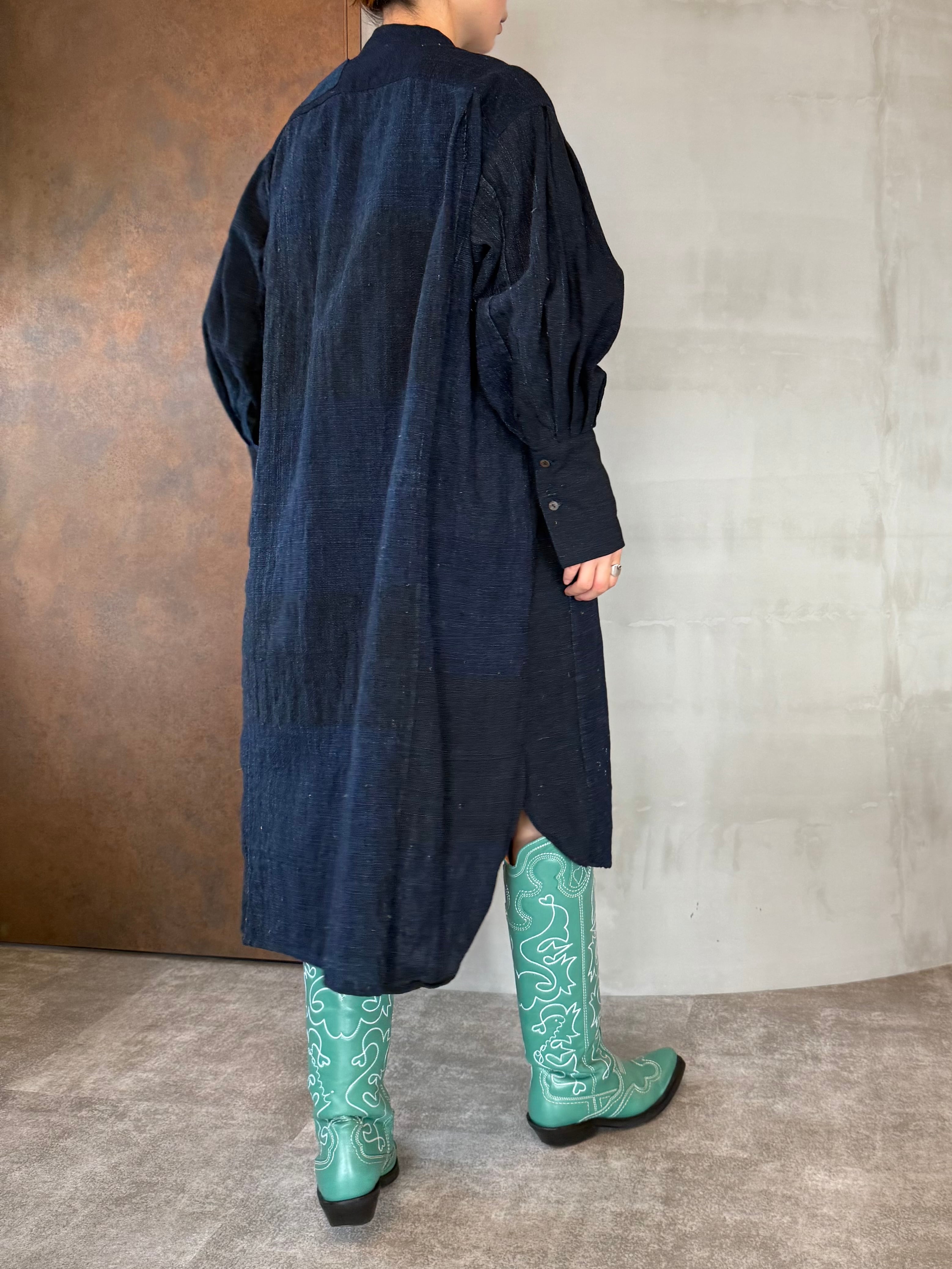 自然の呼吸を残した藍の深みを纏いながらも、現代の空気に馴染む構築的な仕上がりです。