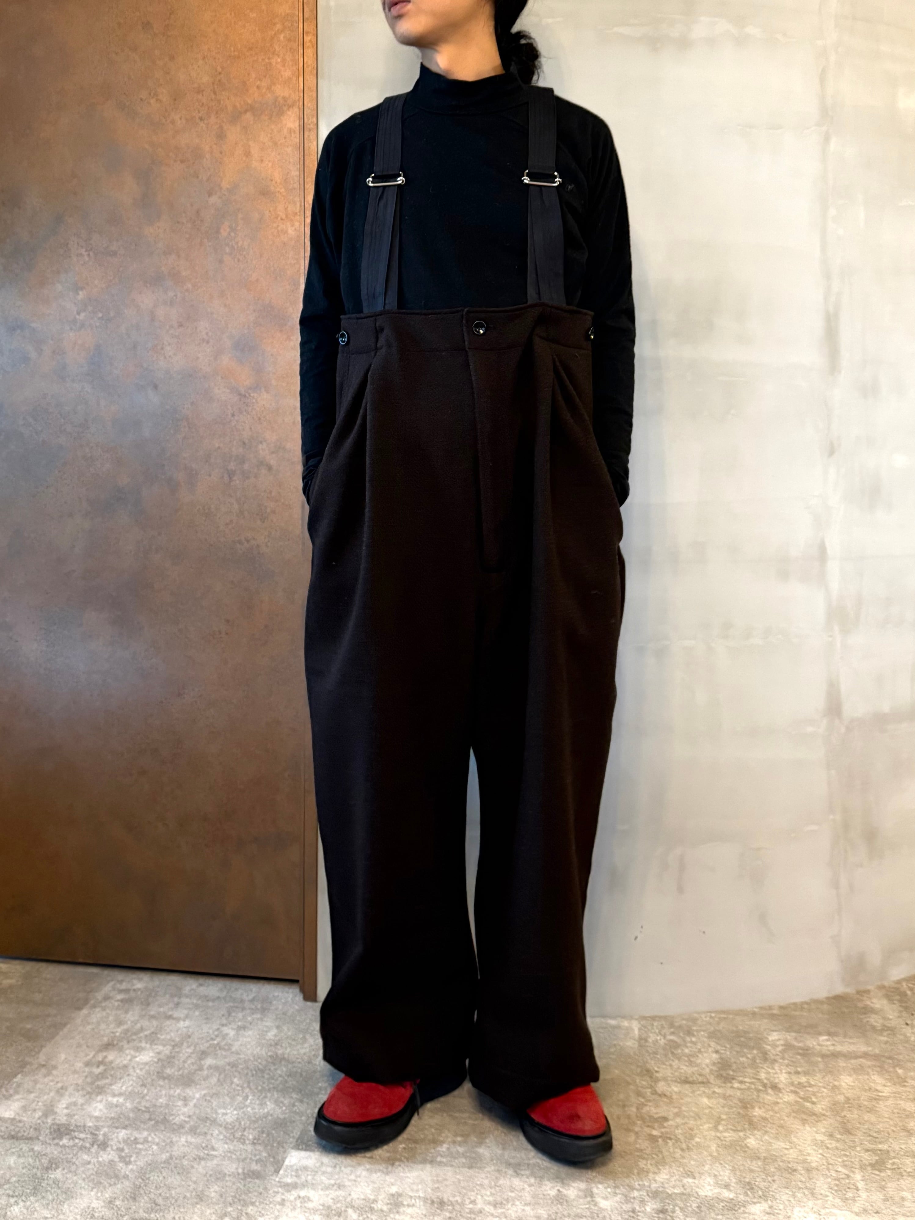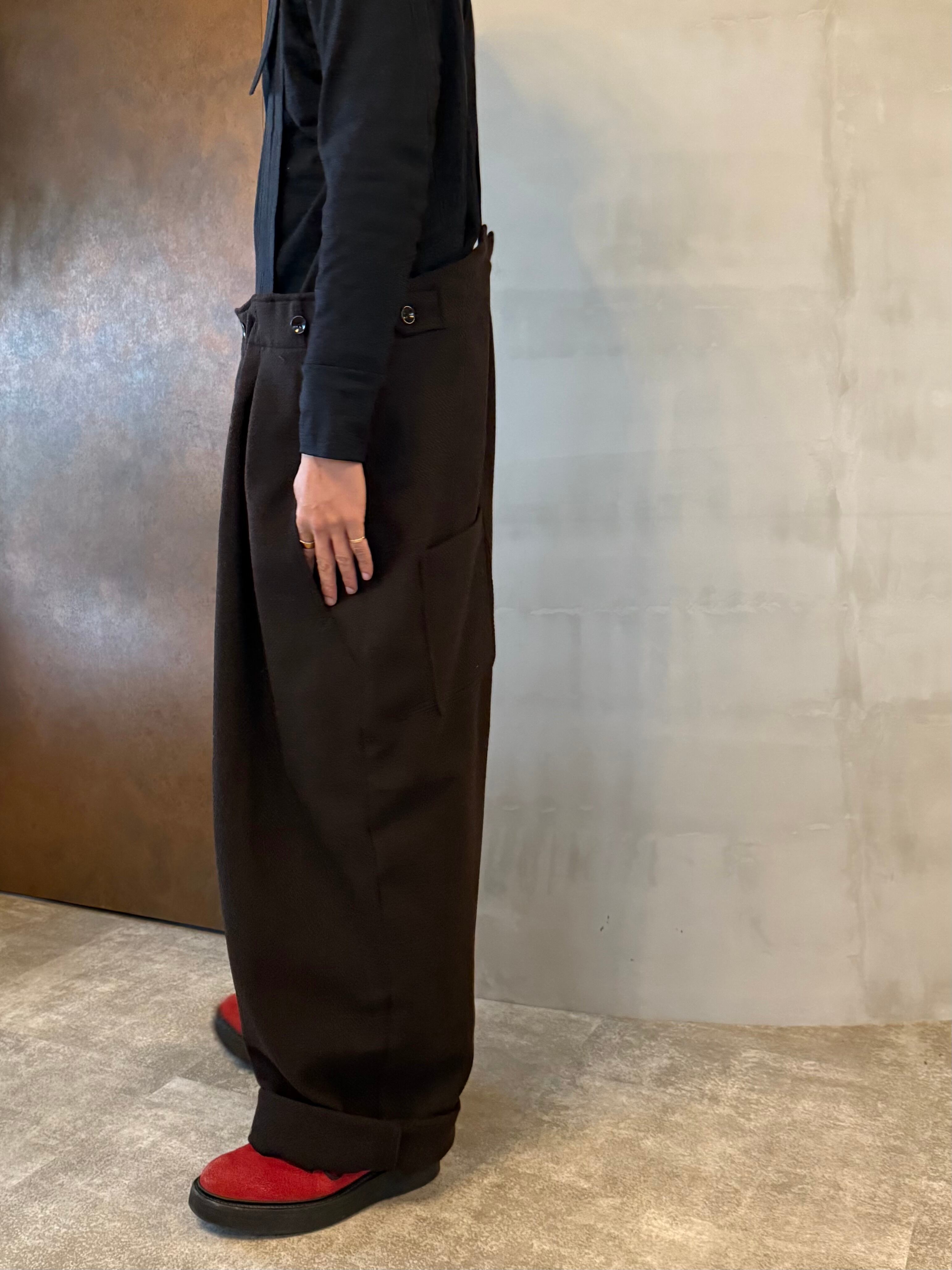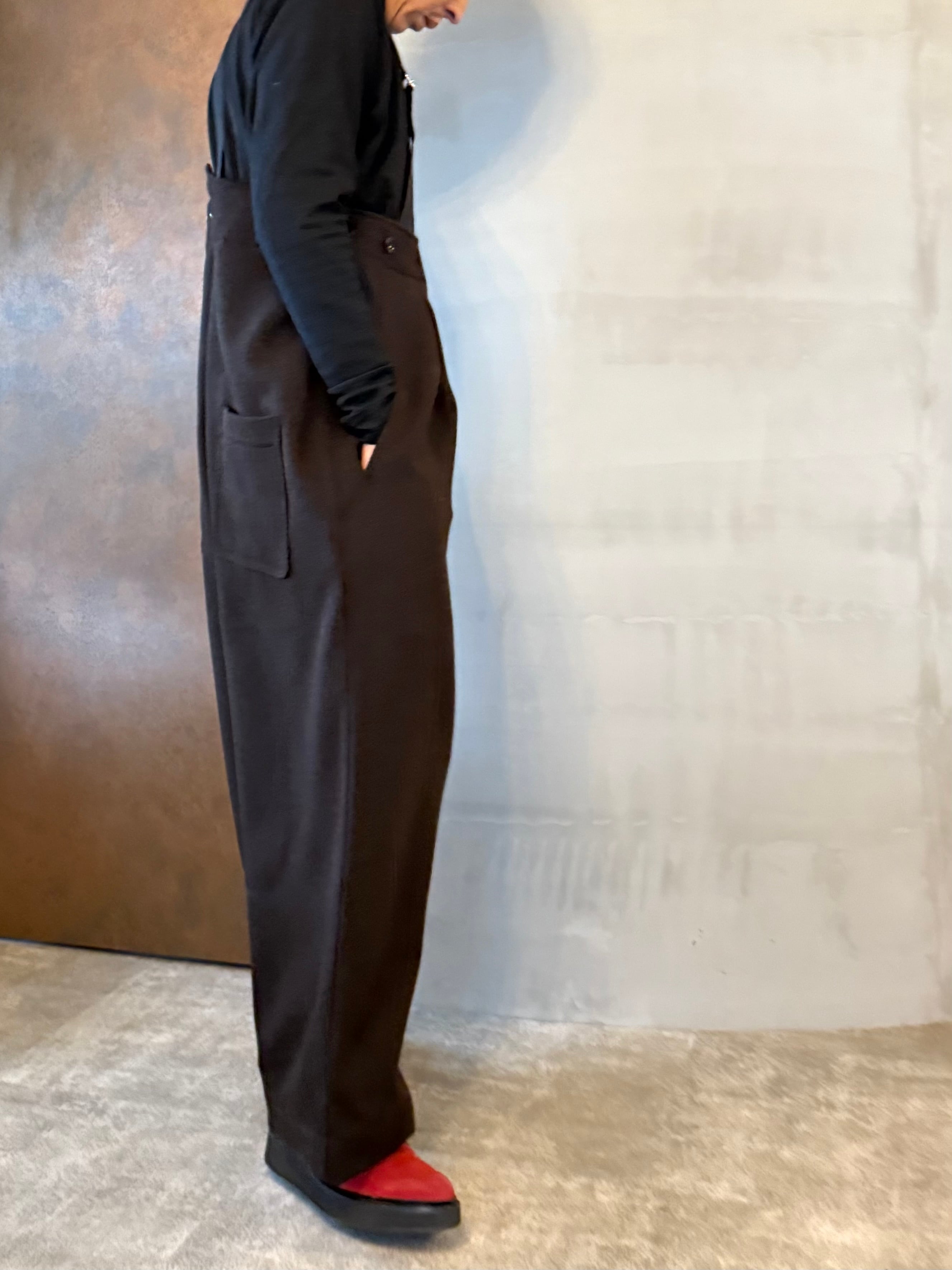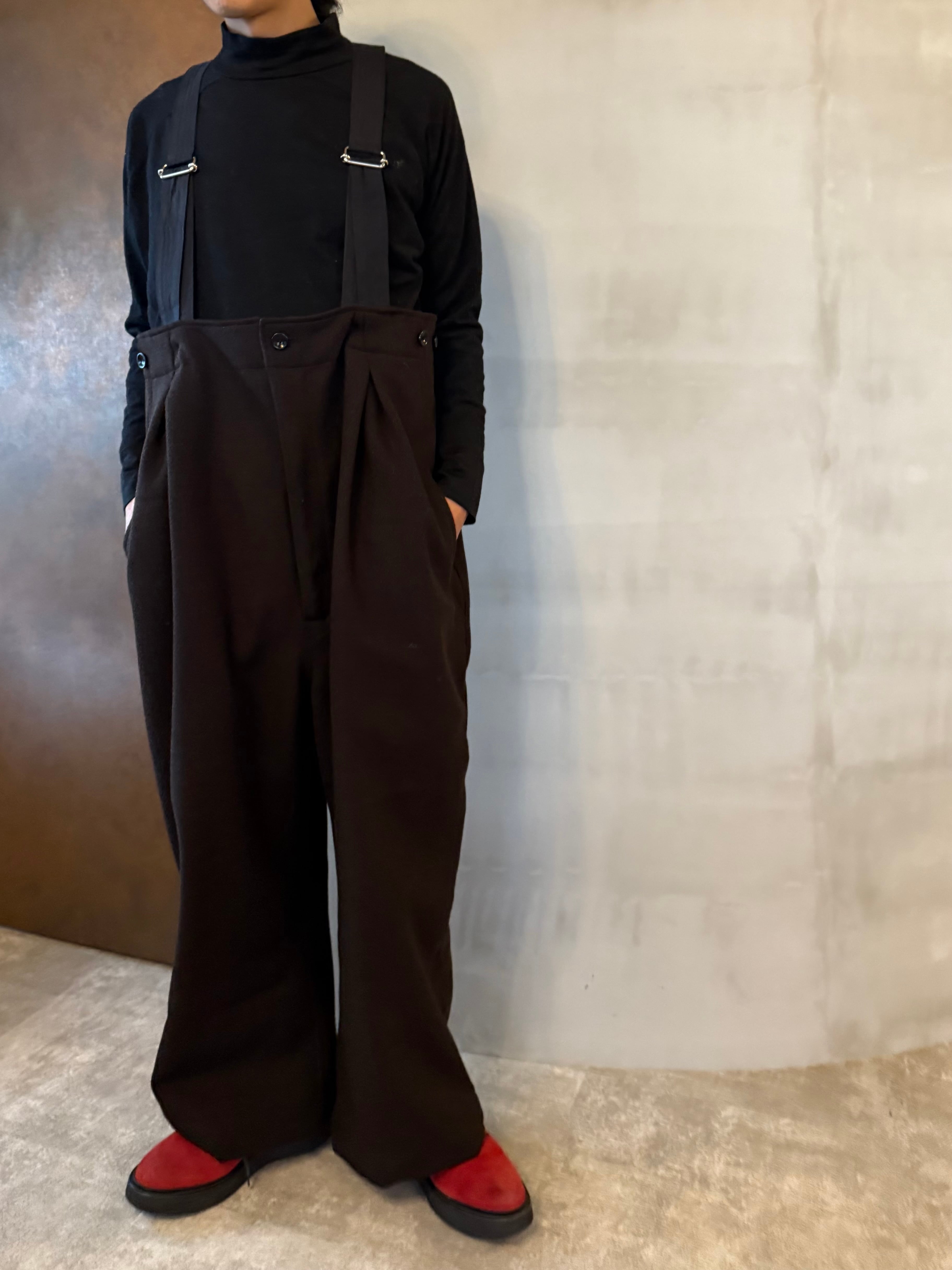 静かな存在感を放つ、ウールのサスペンダーパンツ。