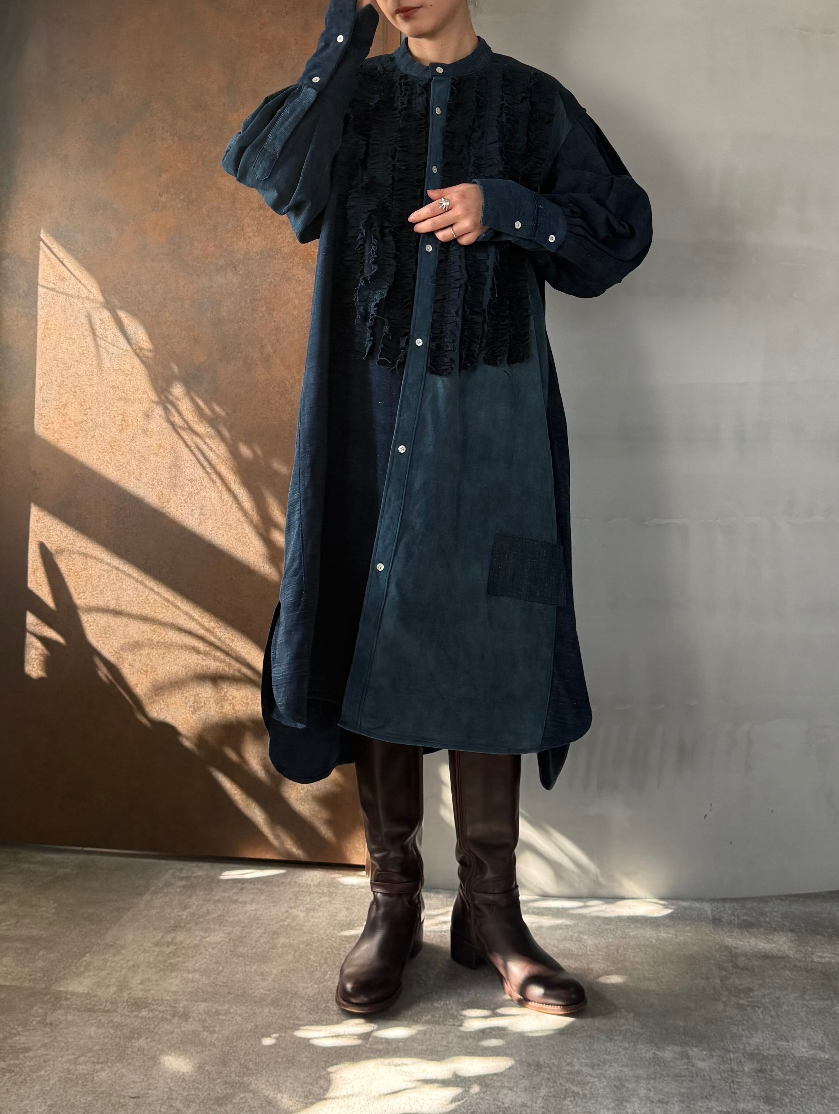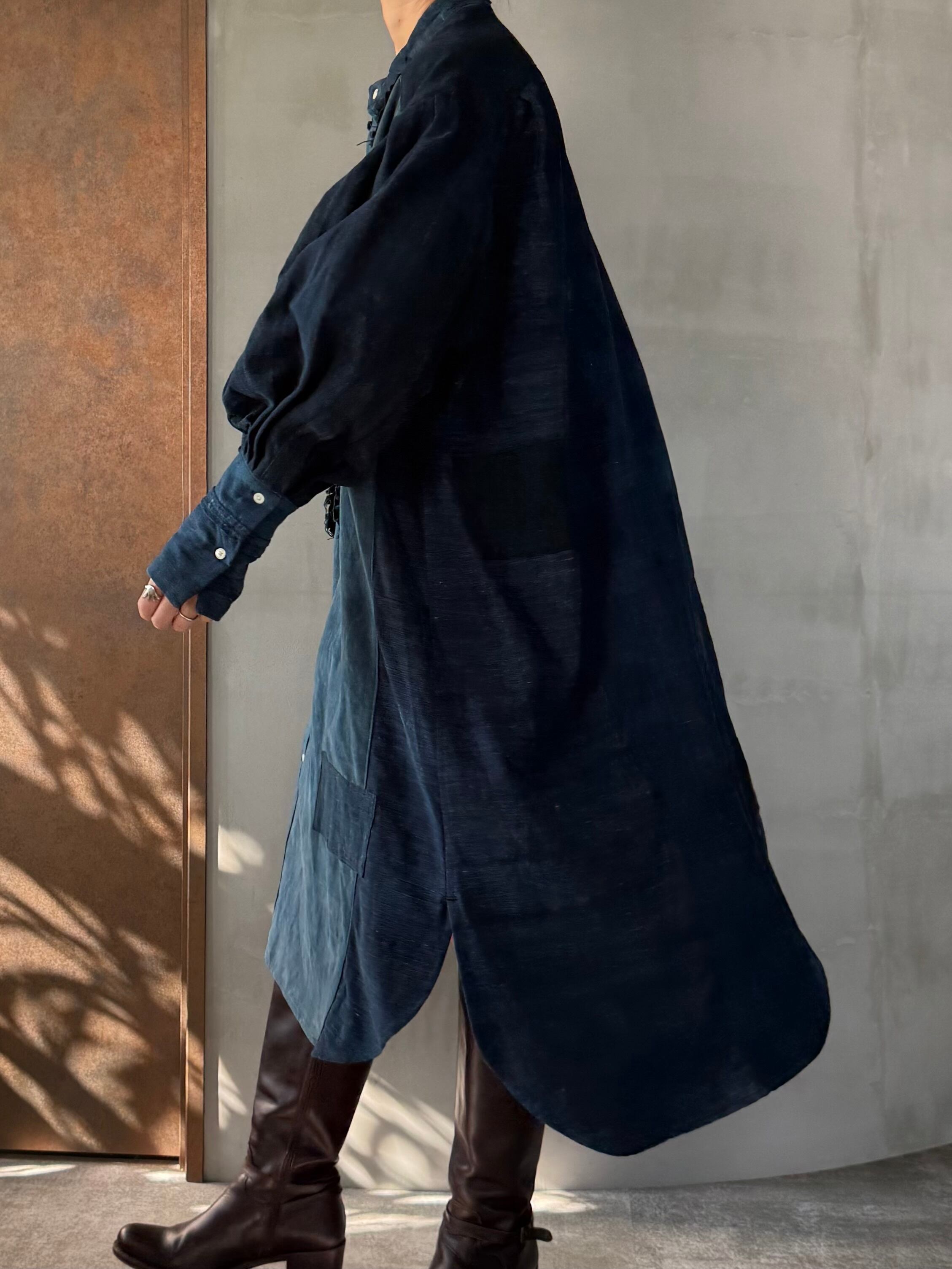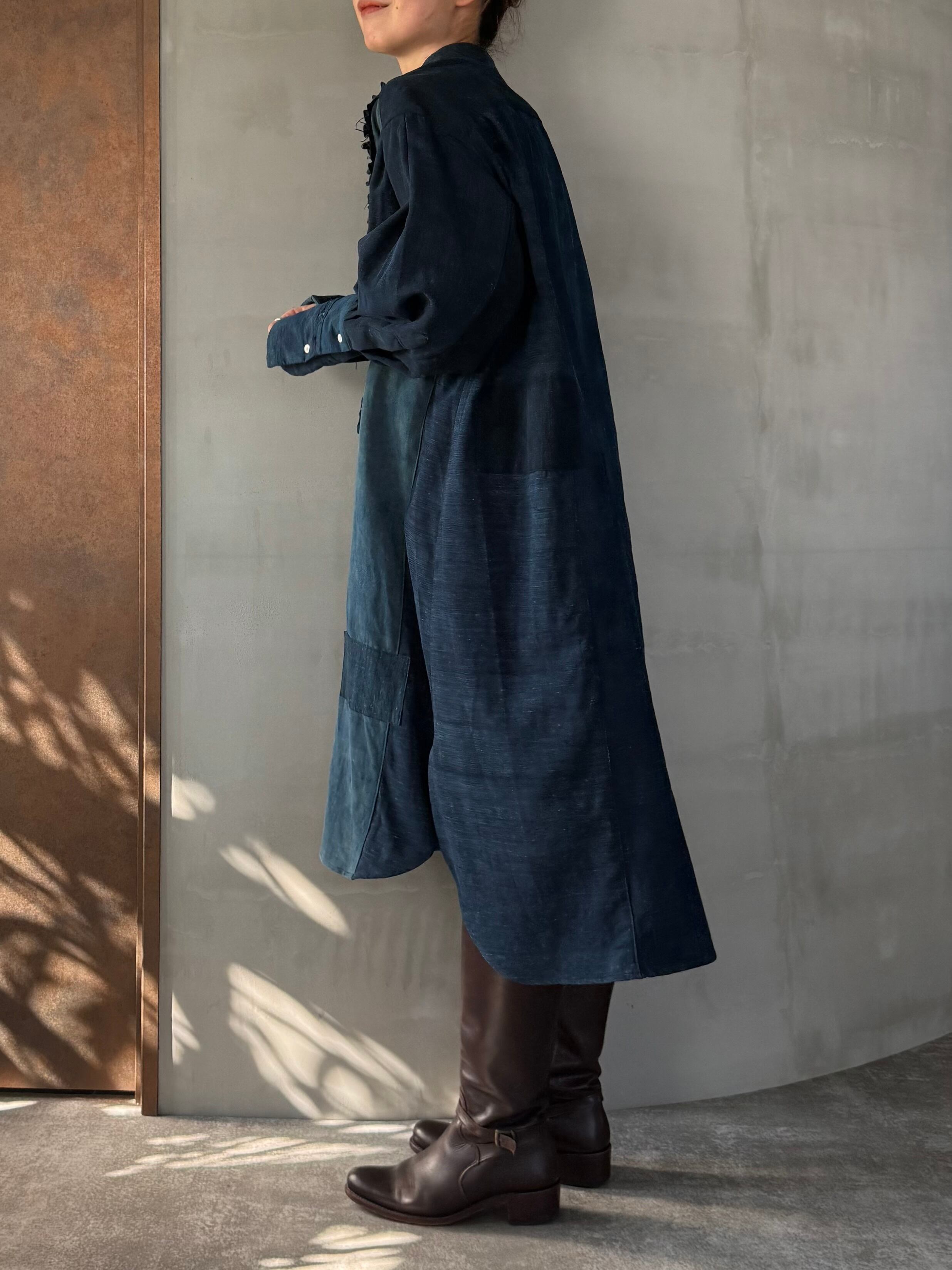 自然の呼吸を残した藍の深みを纏いながらも、現代の空気に馴染む構築的な仕上がりです