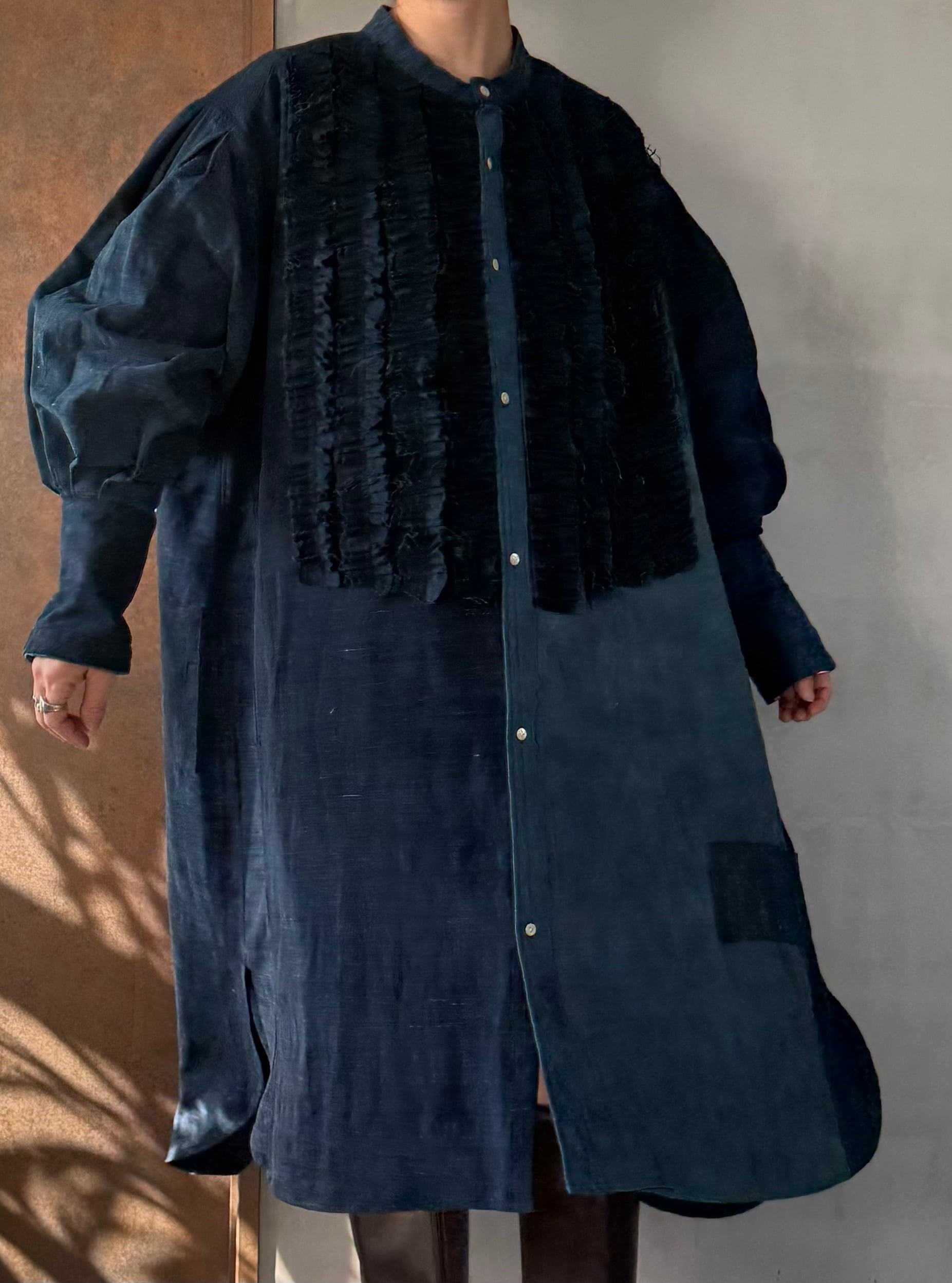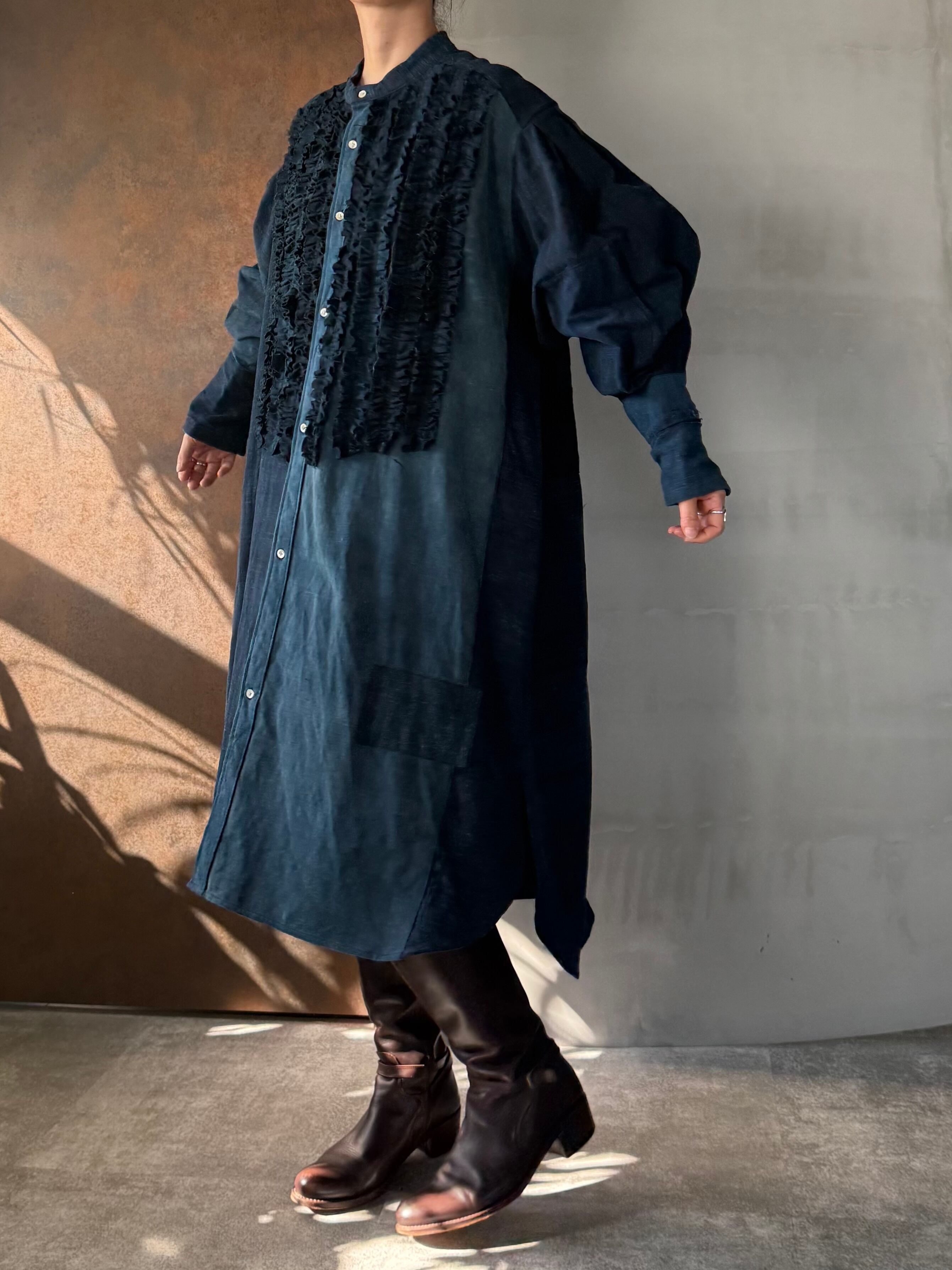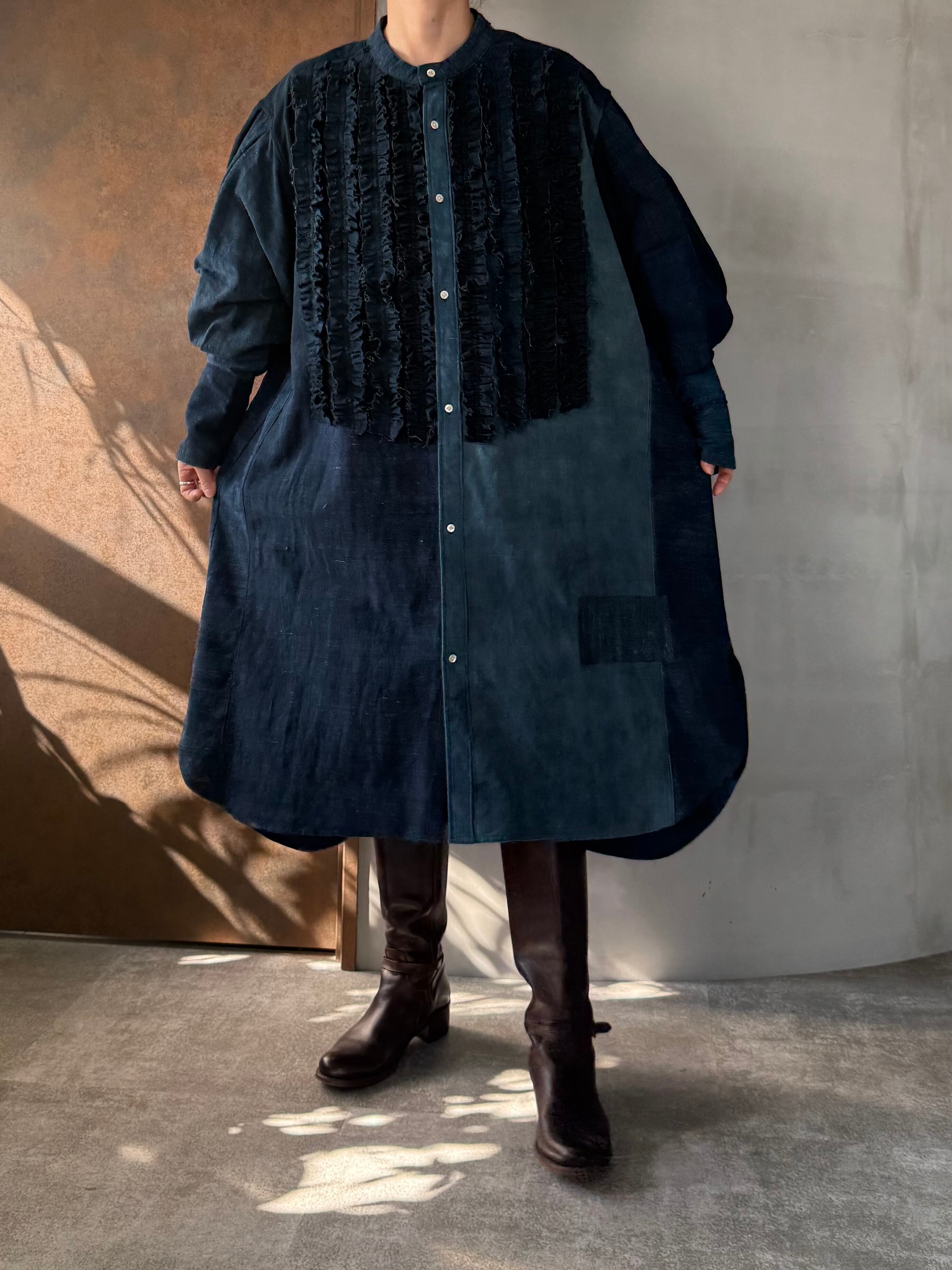 自然の呼吸を残した藍の深みを纏いながらも、現代の空気に馴染む構築的な仕上がりです