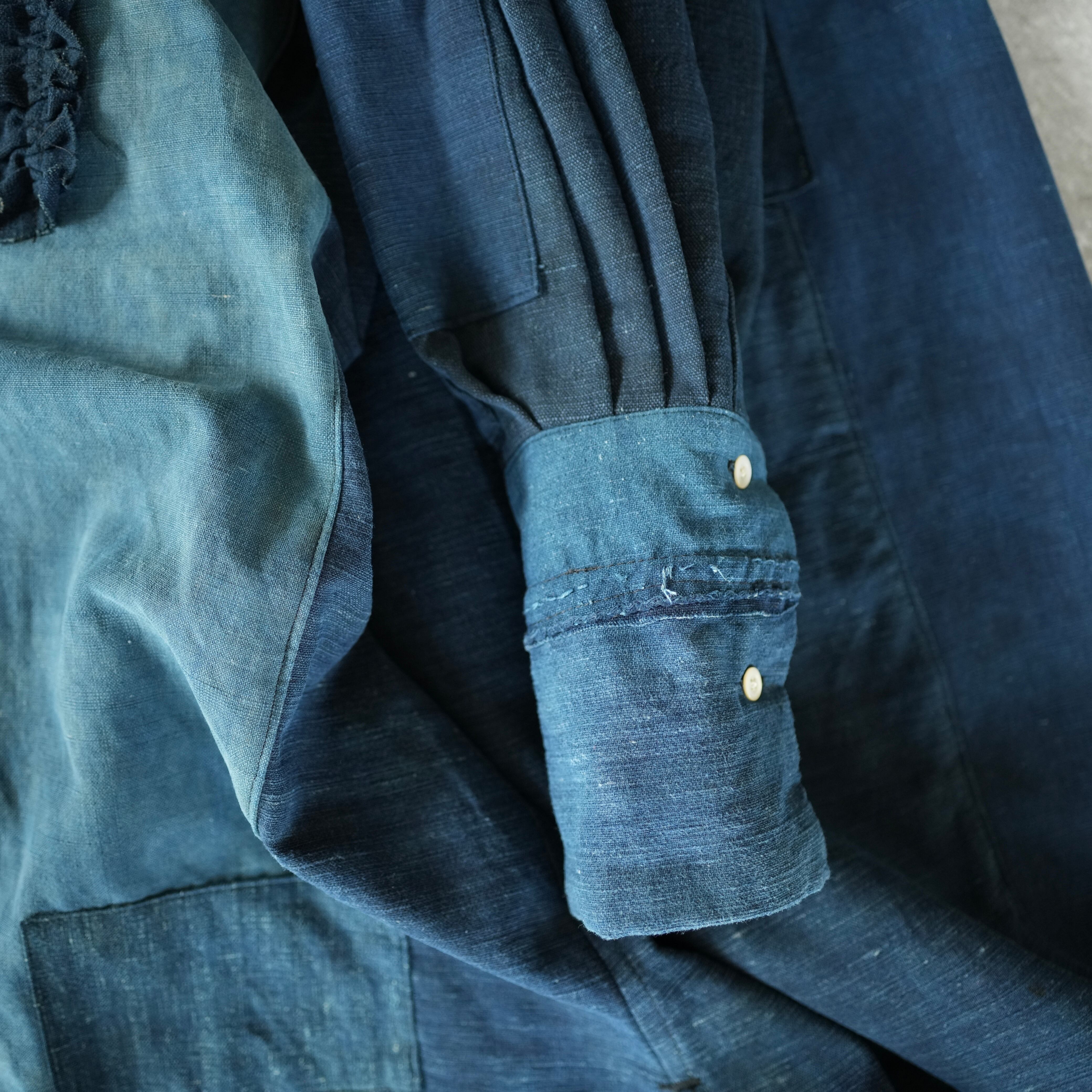 豊かな経年の表情と風合いを生かしながら、更に丁寧に継ぎ接ぎを施し、一着一着仕立てました