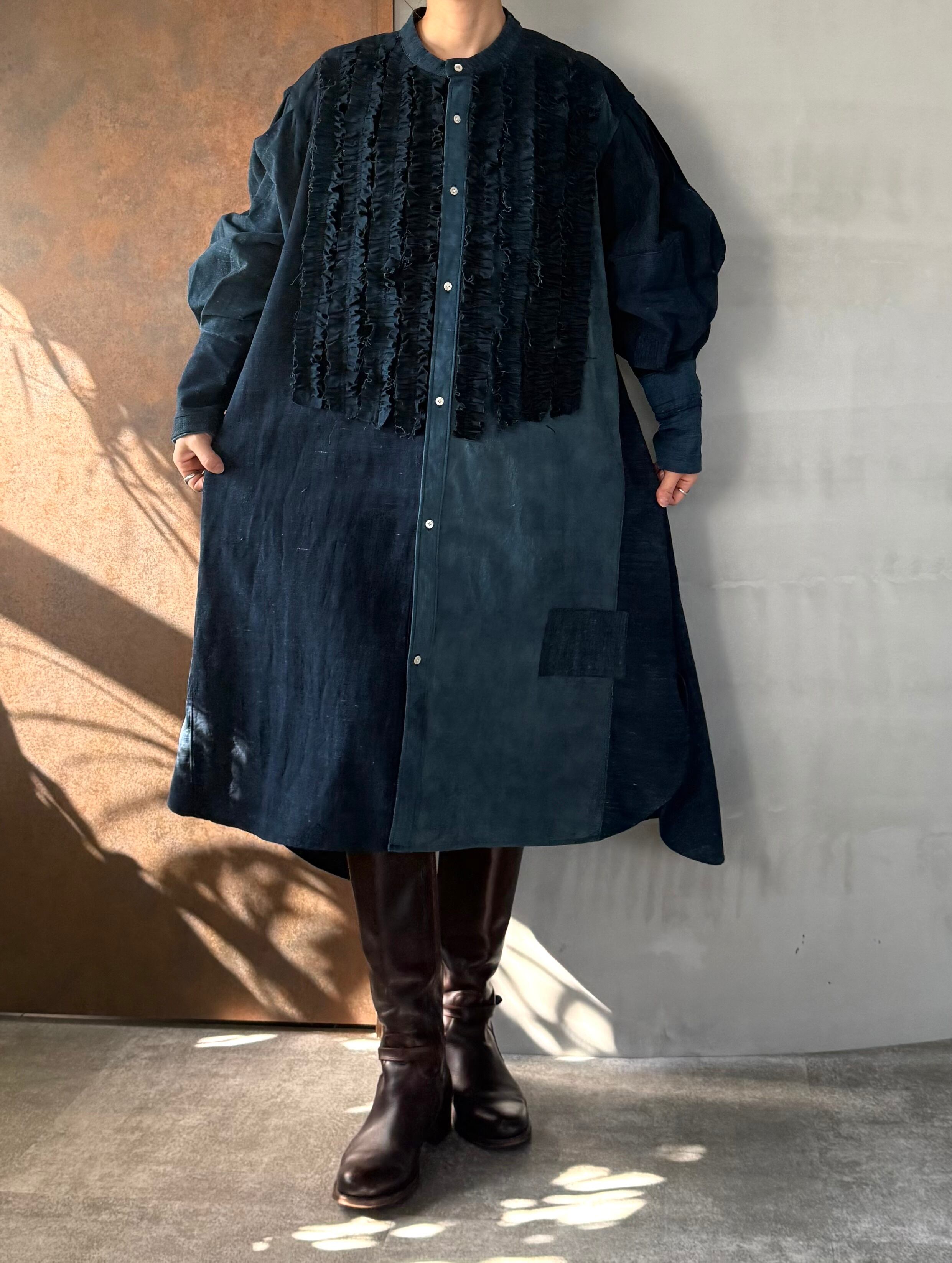 フロントいっぱいにフリルを施した贅沢なシャツワンピース