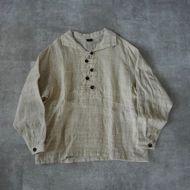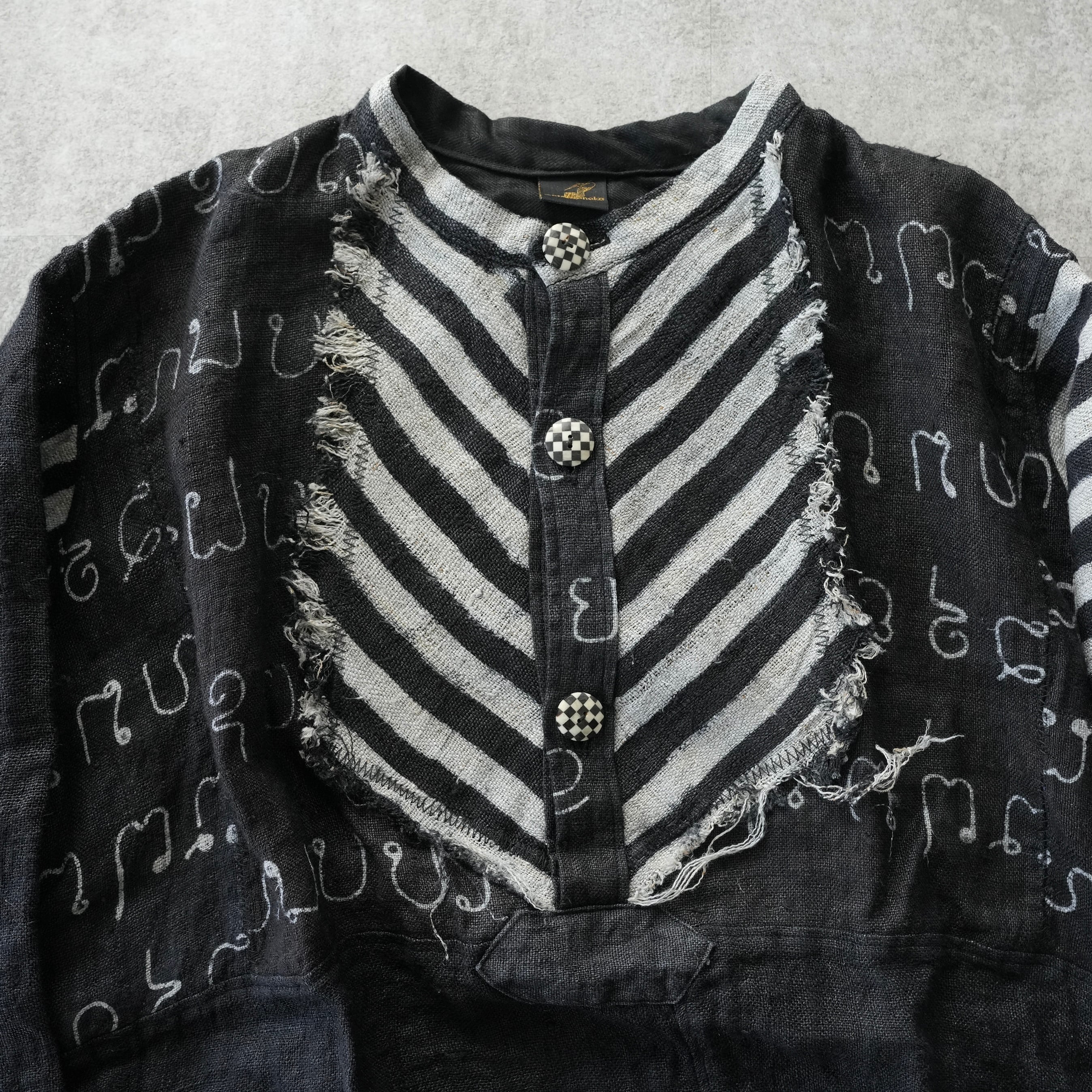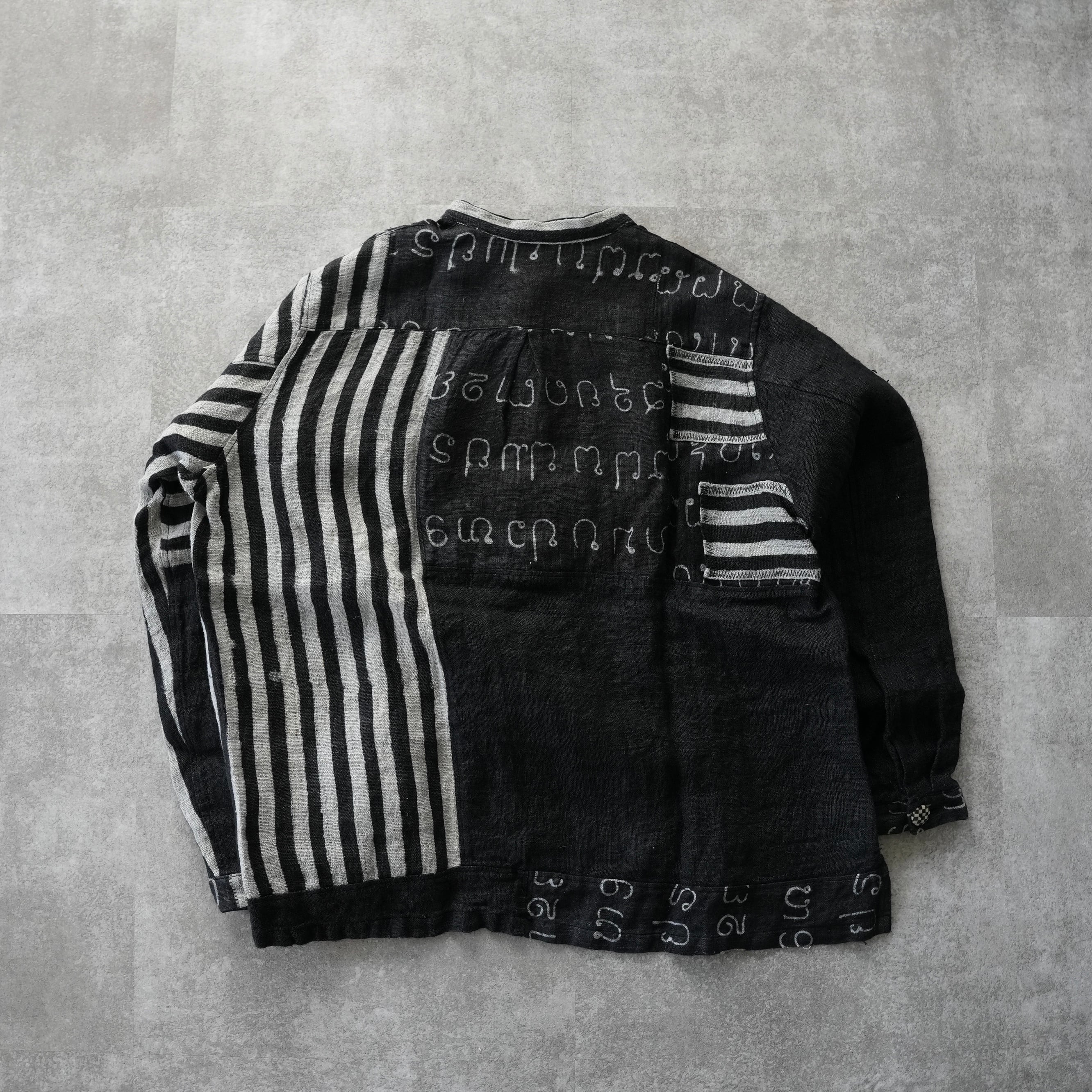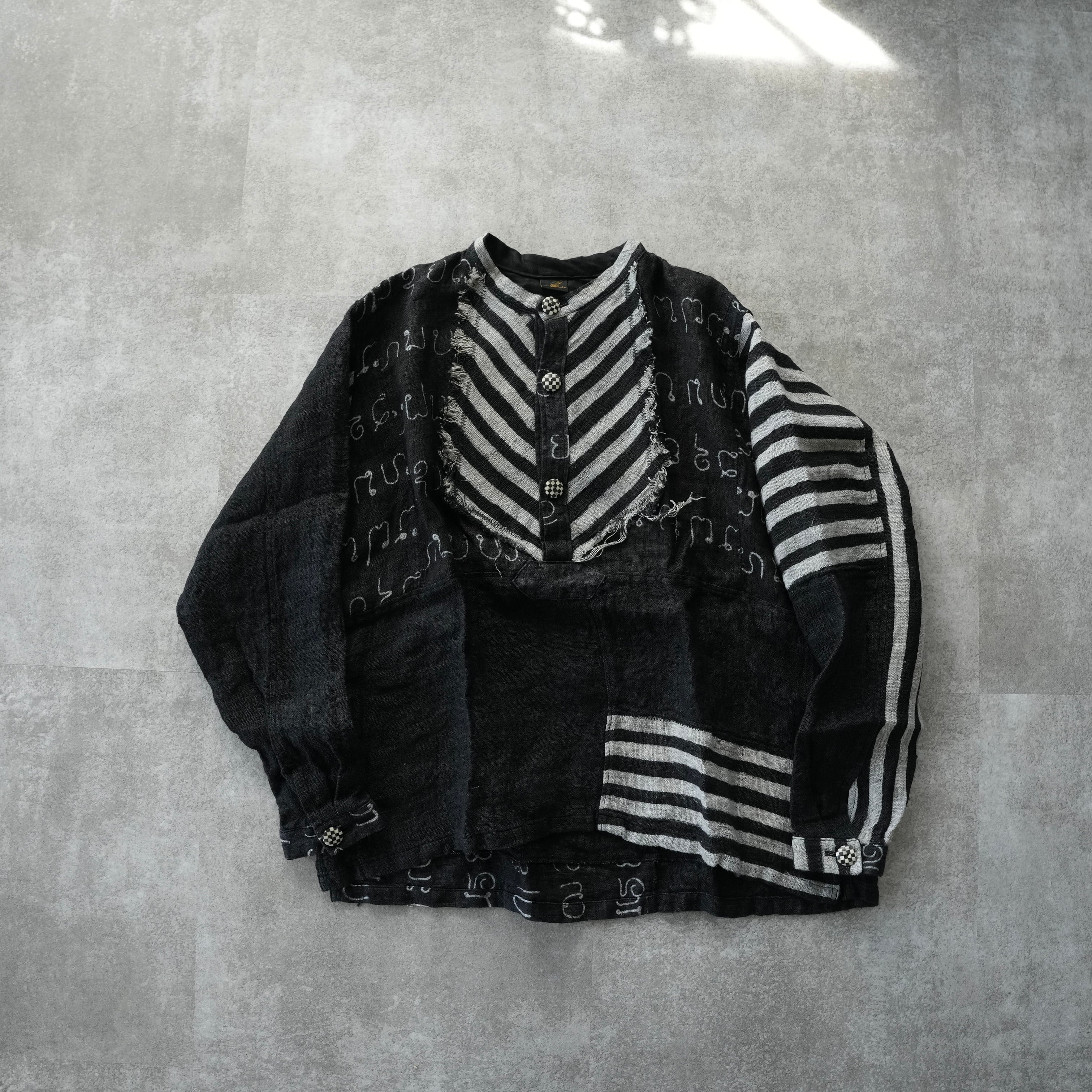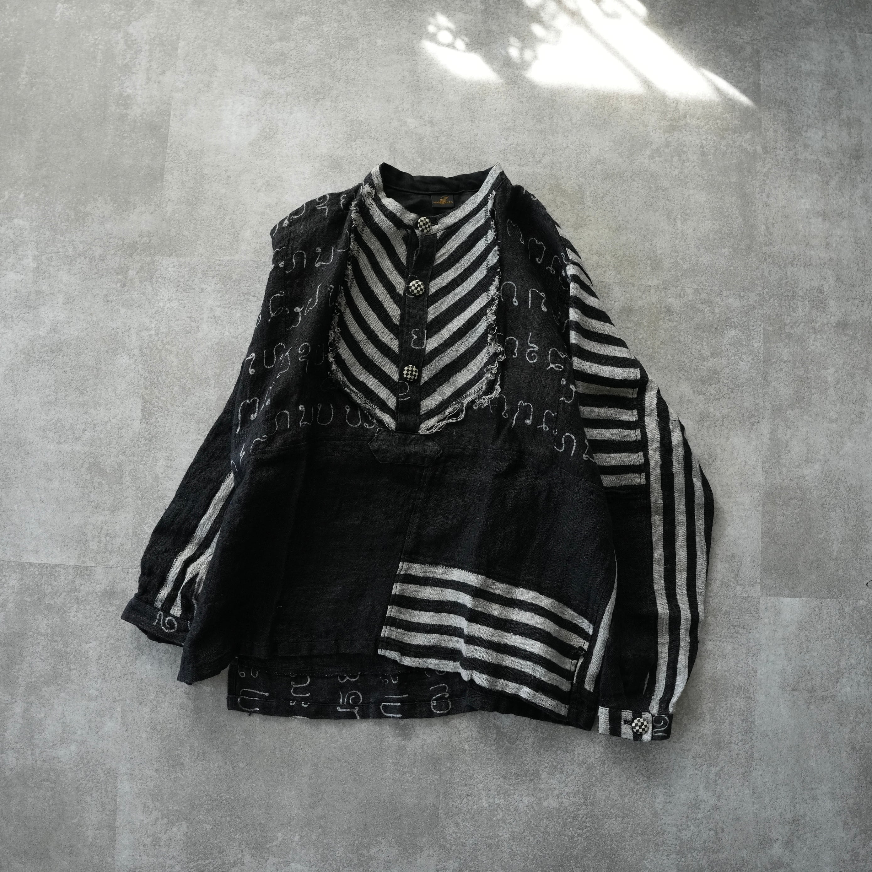 話題のhemp series、希少なろうけつ染の柄と手染め無地のヘンプをパッチワークし特別なpulloverが仕立て上がりました