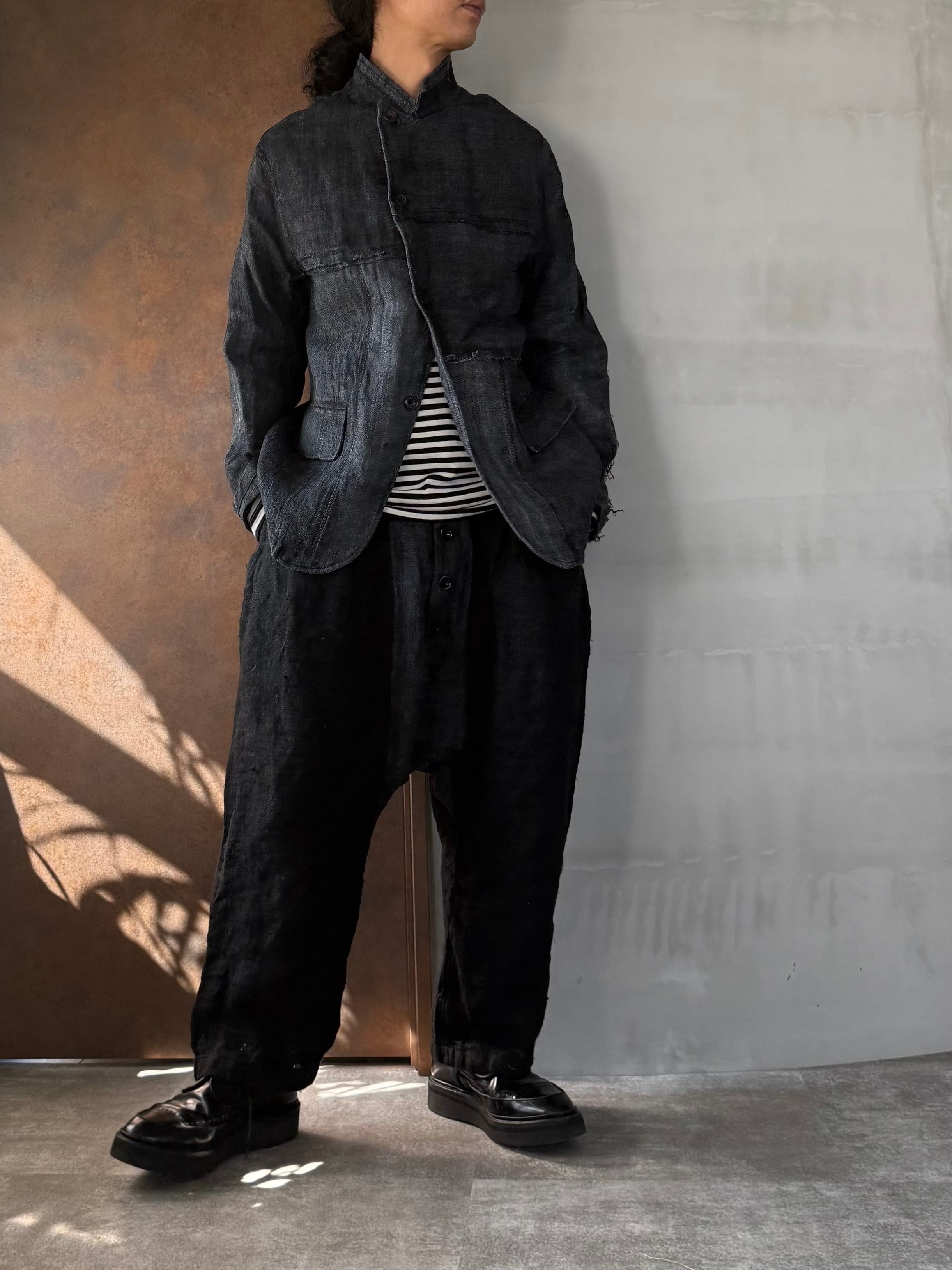 こちらの黒は手織りヘンプに更に手染めを施した贅沢な生地