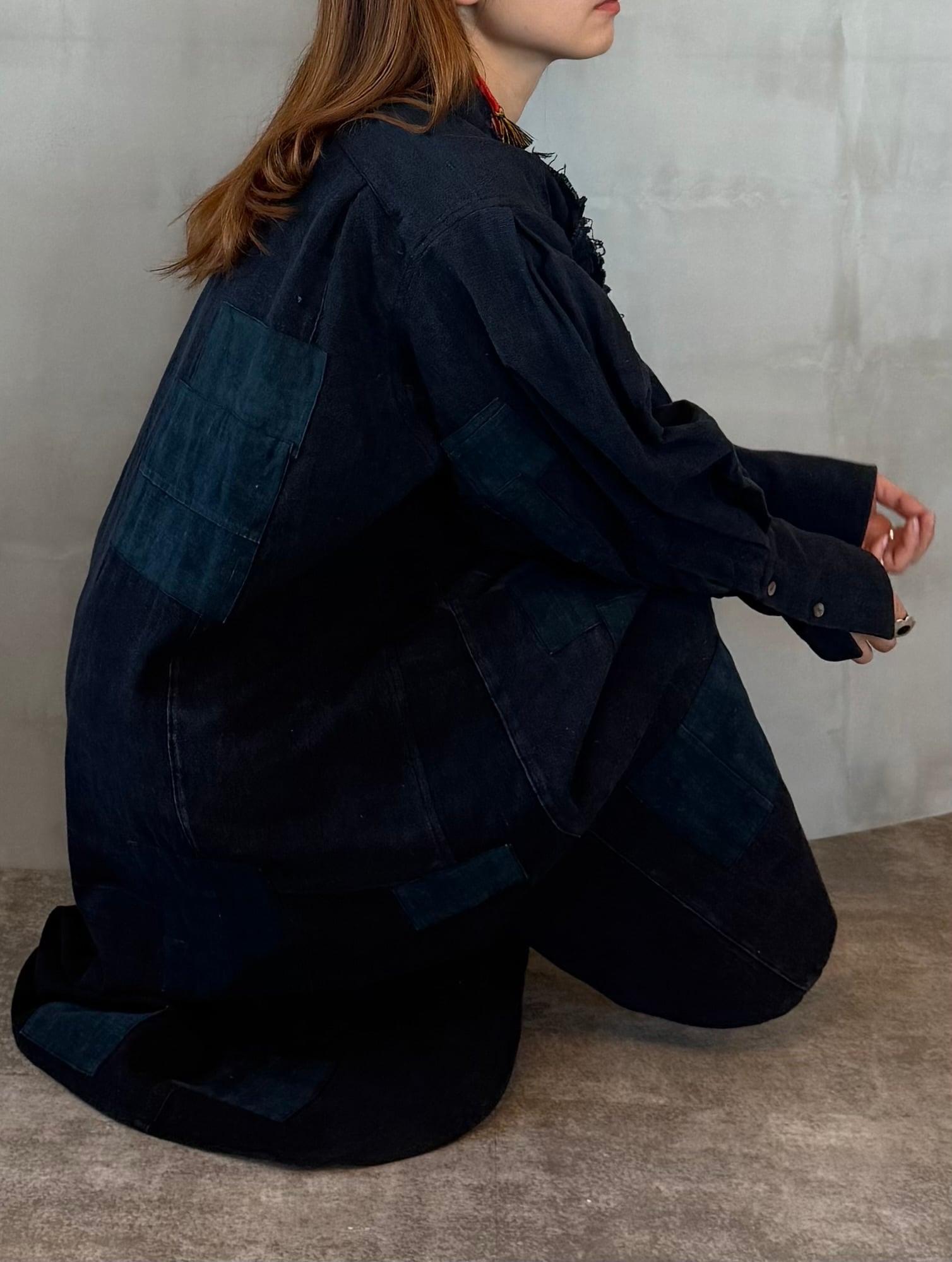 豊かな経年の表情と風合いを生かしながら、更に丁寧に継ぎ接ぎを施し、一着一着仕立てました