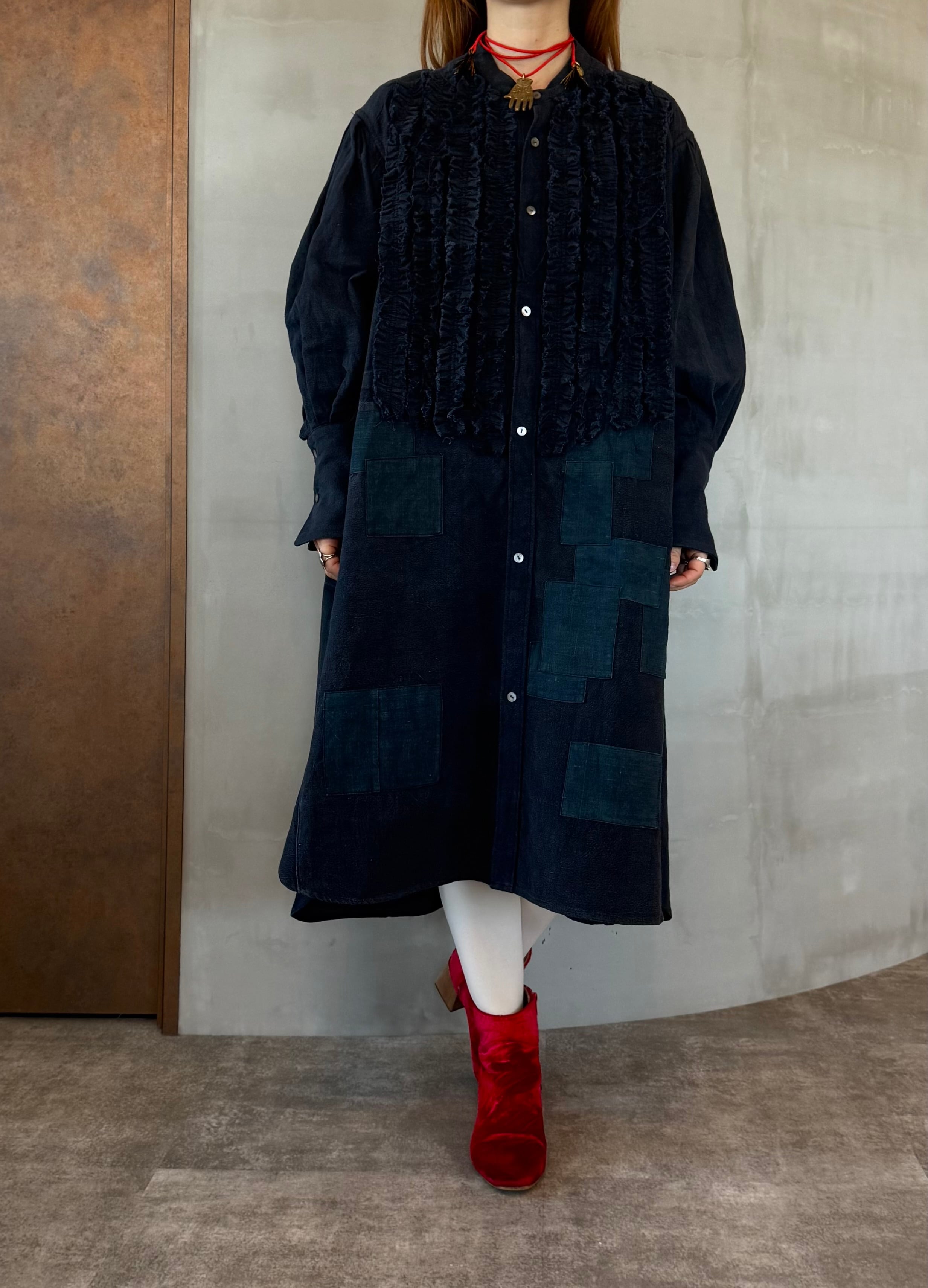 フロントいっぱいにフリルを施した贅沢なシャツワンピース