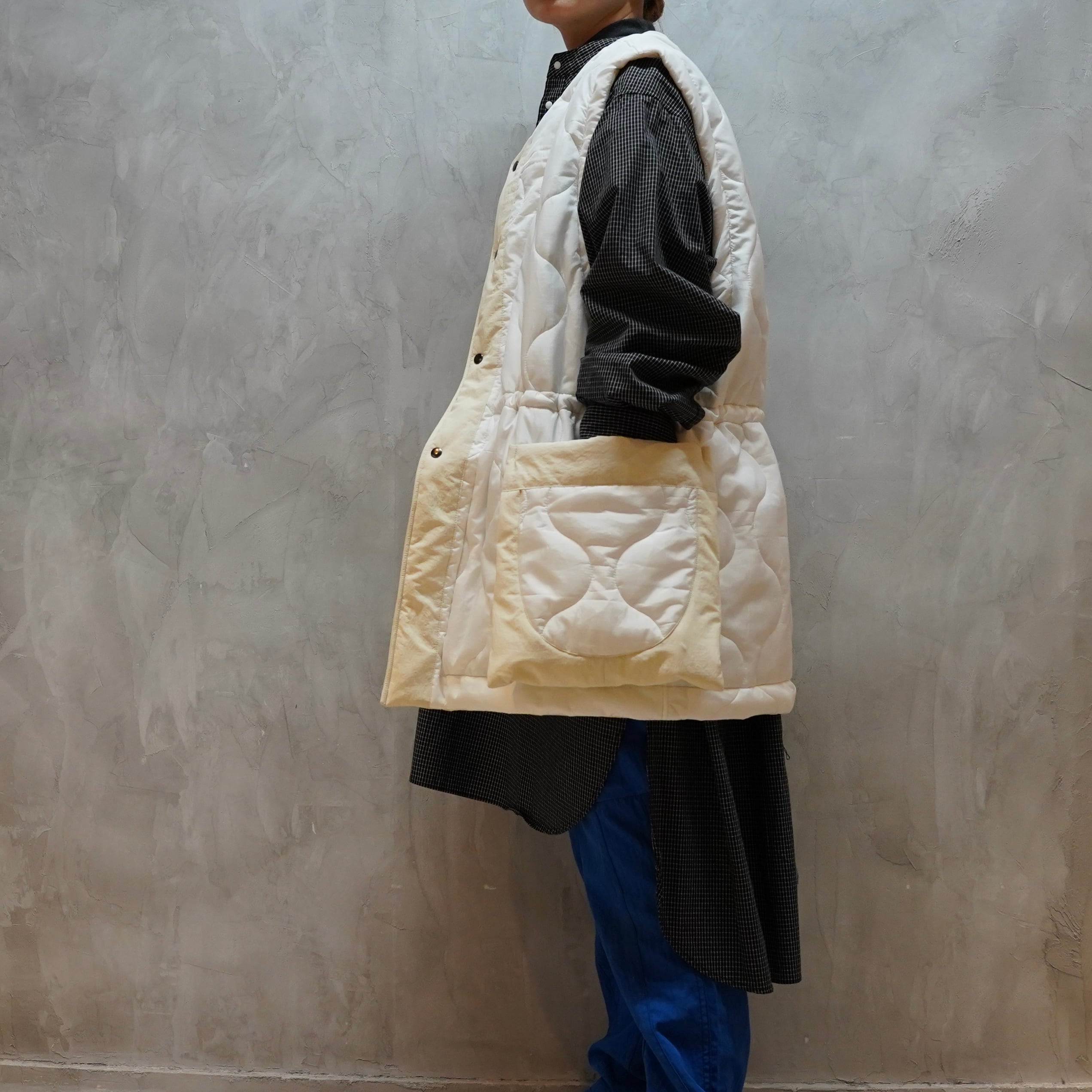 アームホールをゆったり作ったquilting vestは、スウェットや厚手のニット、お手持ちのアウターの上から羽織って楽しめます。
